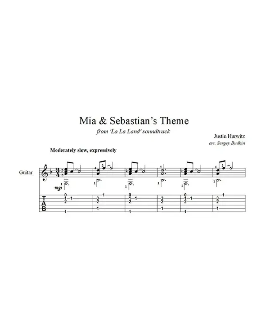 Mia & Sebastians Theme (Ла Ла Лэнд) для гитары