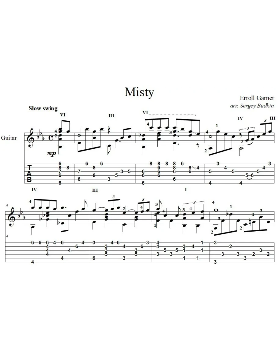 Аранжировка для гитары джазового стандарта Эрролла Гарнера.