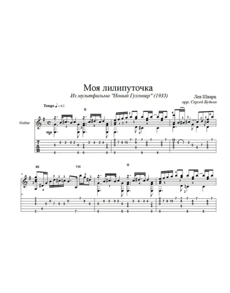 Аранжировка для гитары песни Льва Шварца из фильма "Новый Гулливер".