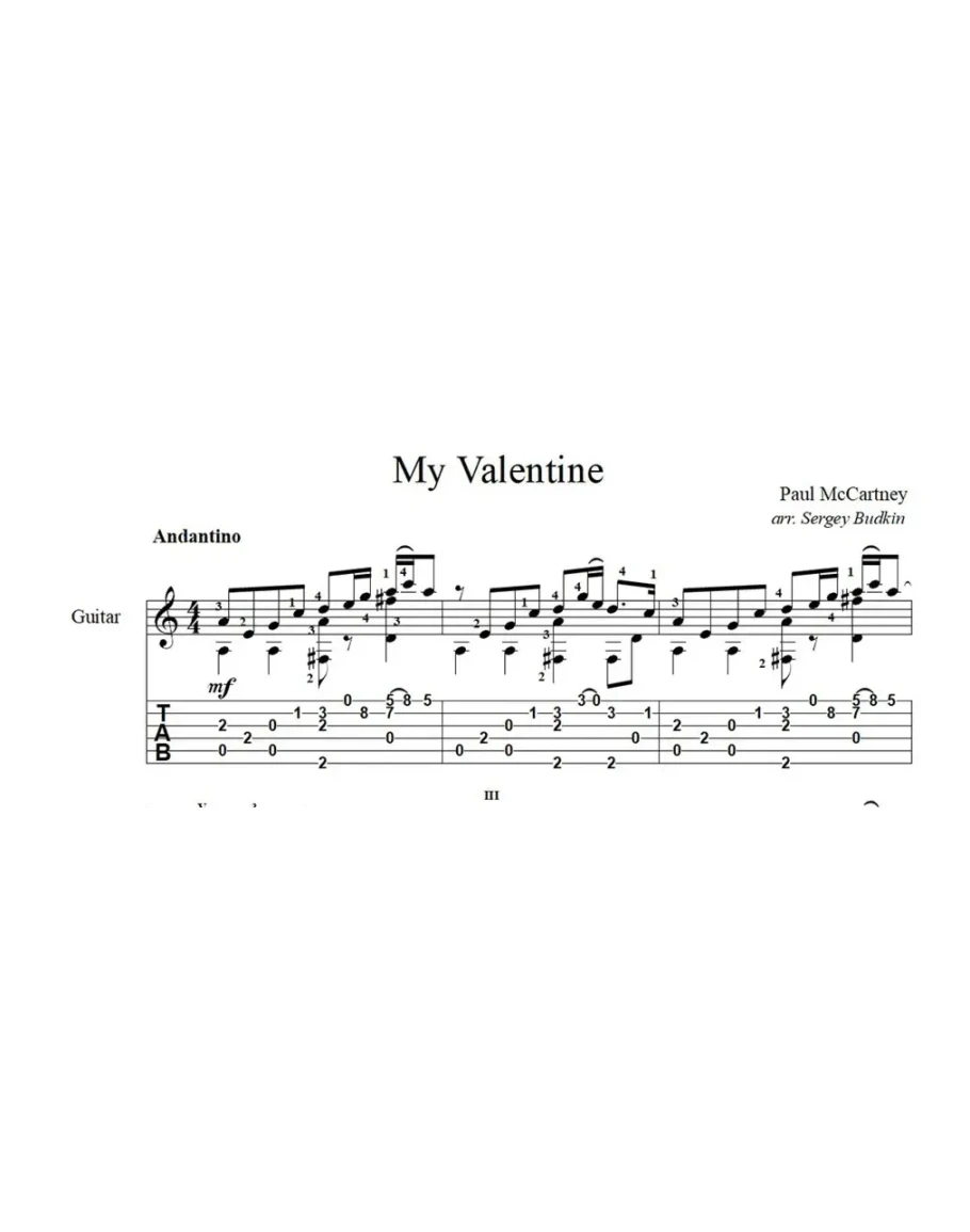 Аранжировка для гитары песни Пола Маккартни "My Valentine".