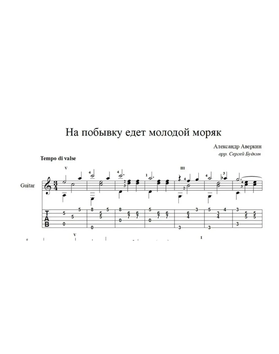 Аранжировка для гитары песни Александра Аверкина "На побывку едет молодой моряк"