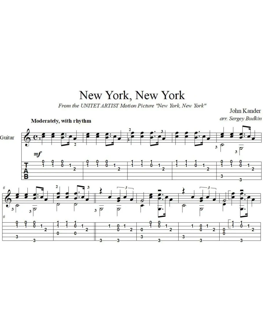 Аранжировка для гитары знаменитой песни Джона Кандера к фильму Мартина Скорсезе "New York, New York".