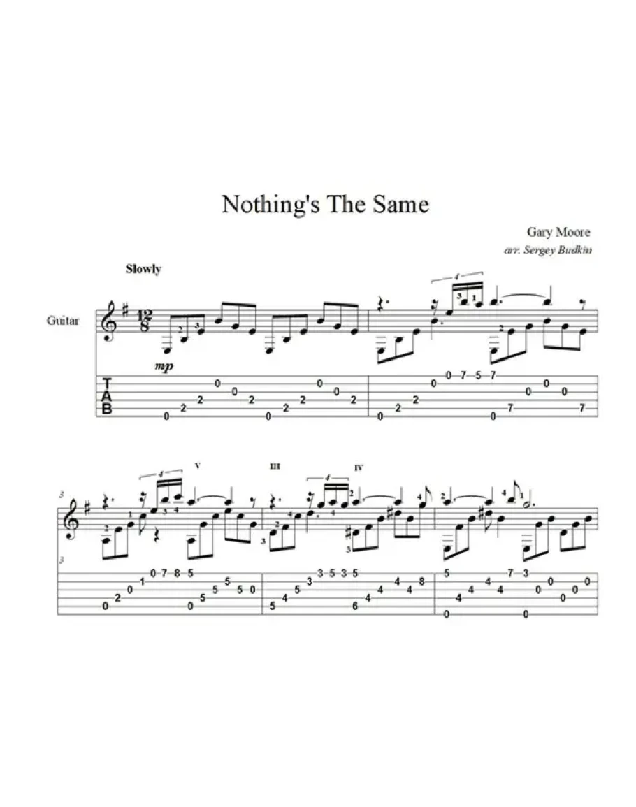 Аранжировка для гитары песни Гэри Мура 'Nothing's The Same'.