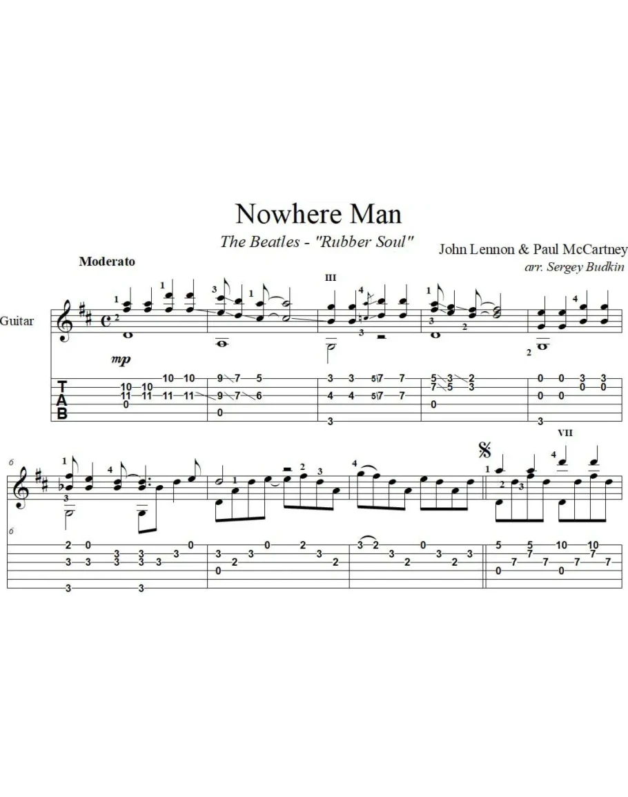 Аранжировка для гитары песни The Beatles из альбома "Rubber Soul".