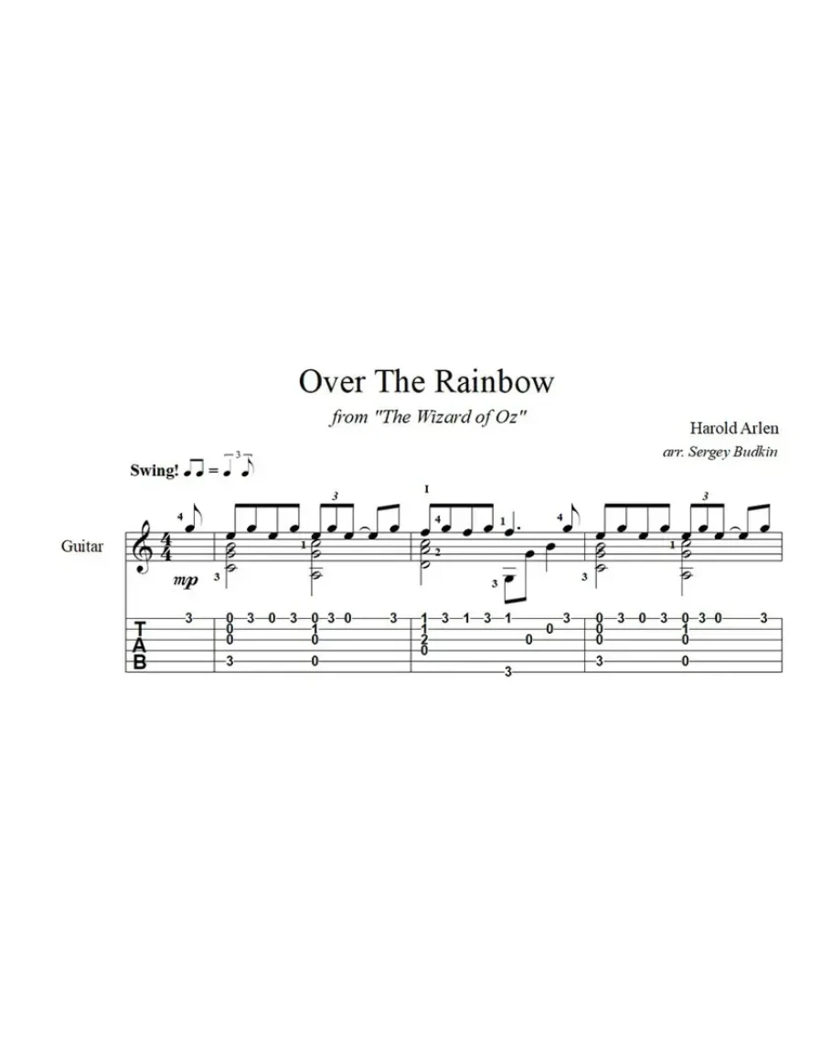 Аранжировка для гитары песни Харольда Арлена из кинофильма "Волшебник страны Оз".