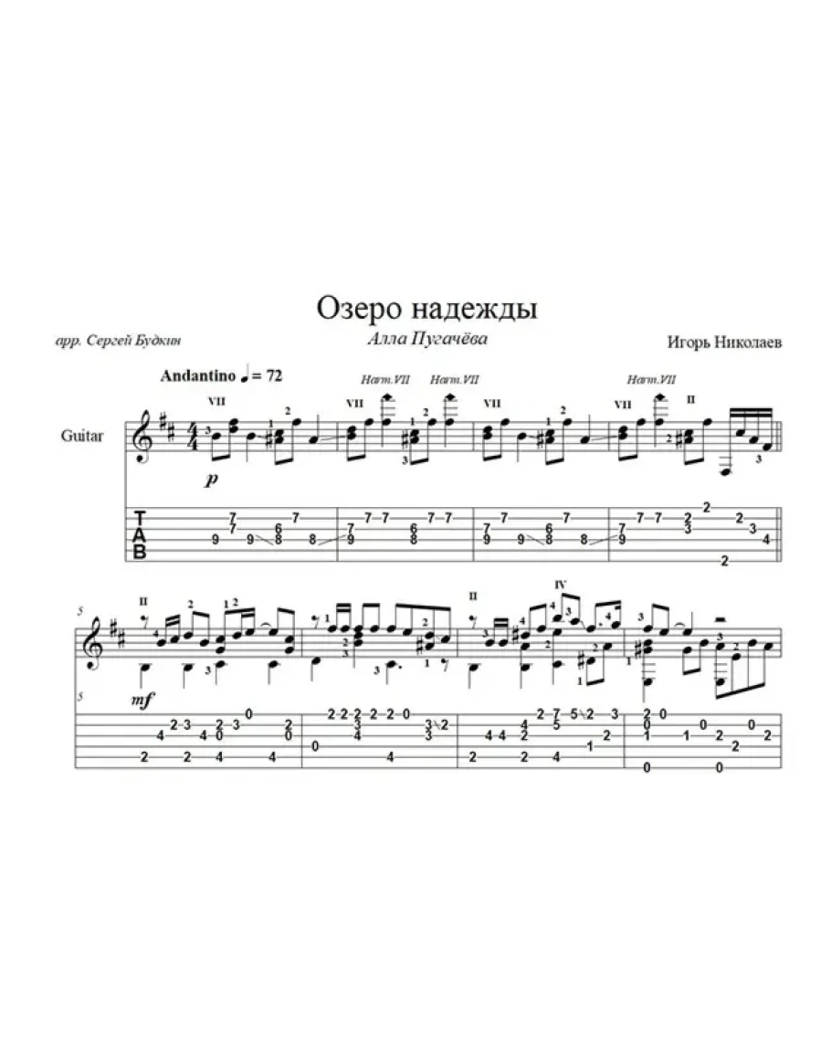 Аранжировка для гитары песни Игоря Николаева, хита Аллы Пугачевой 90-х.