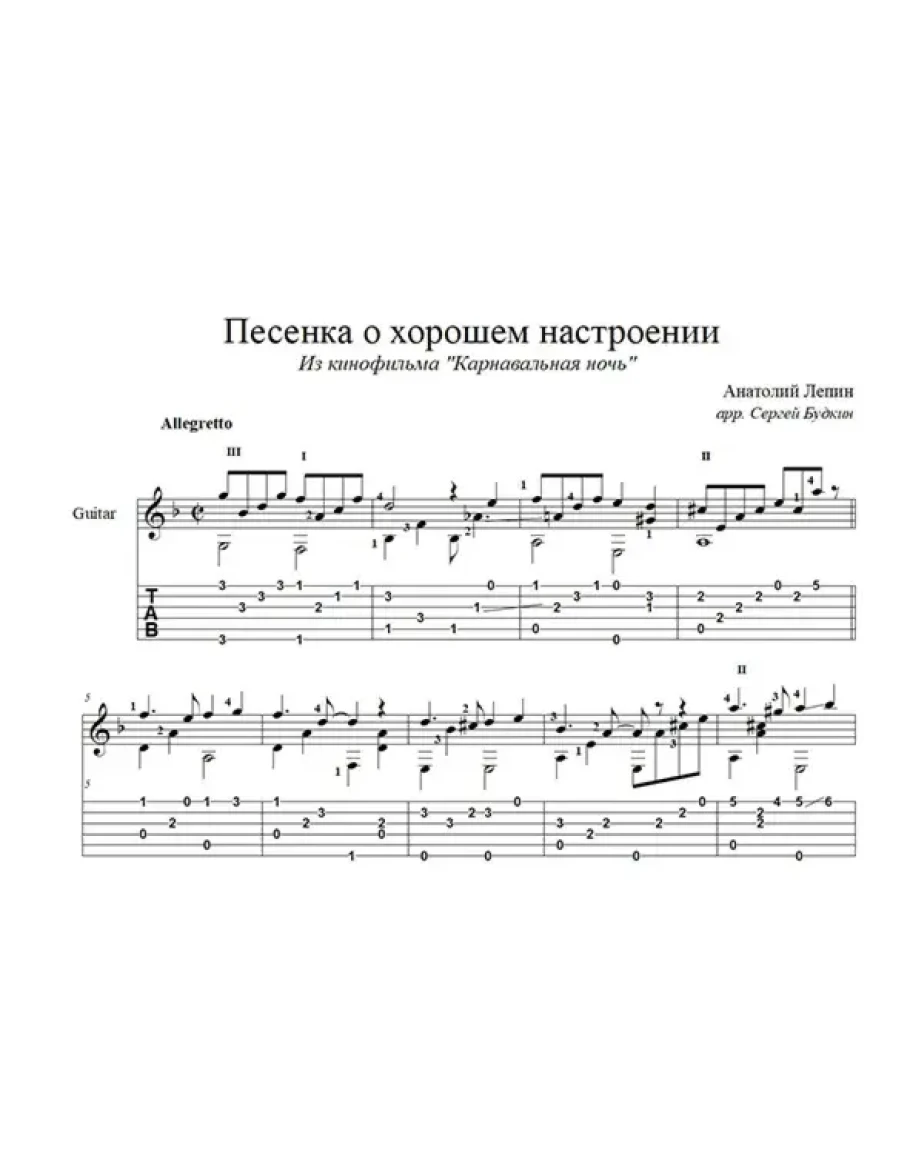 Аранжировка для гитары песни Анатолия Лепина из кинофильма "Карнавальная ночь".
