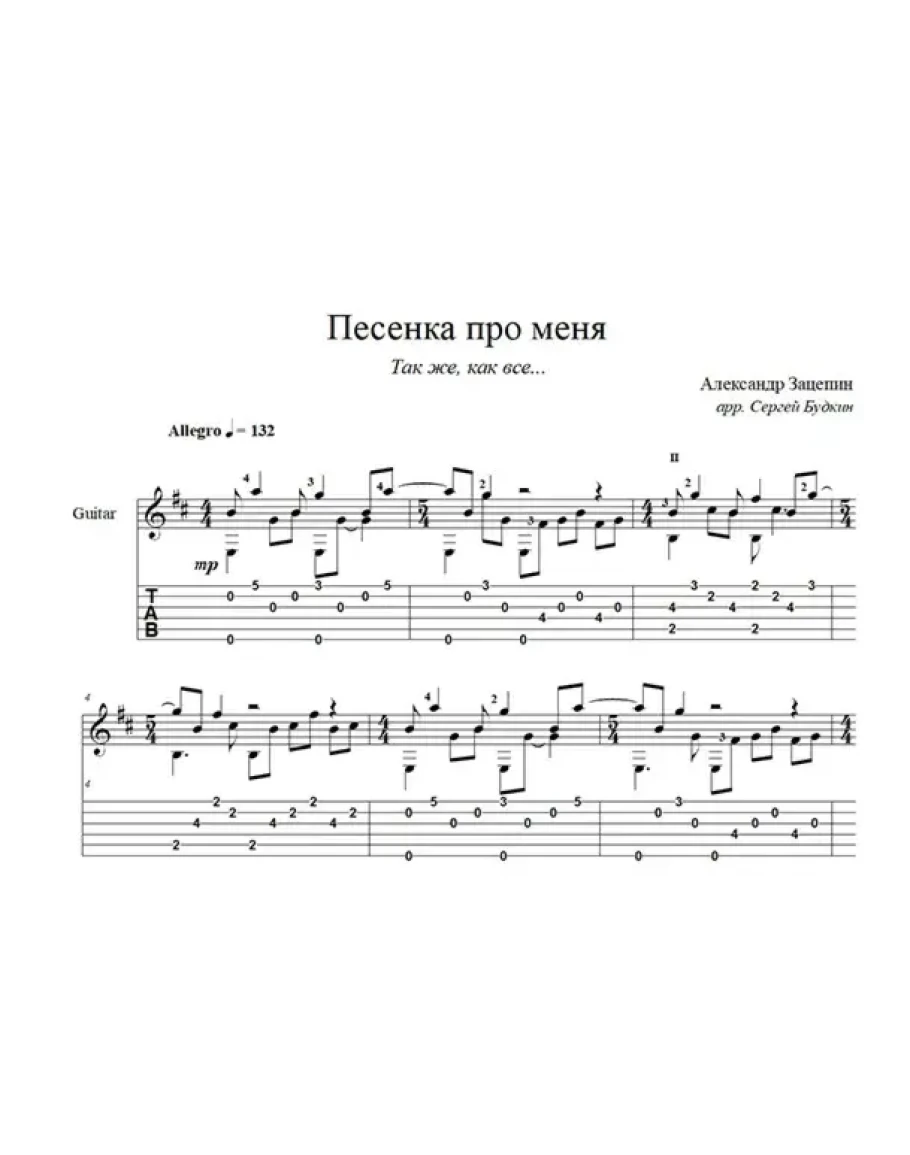 Аранжировка для гитары Песенки про меня (Так же, как все...), написанной Александром Зацепиным для кинофильма «Женщина, которая поёт» и исполненной Аллой Пугачёвой.