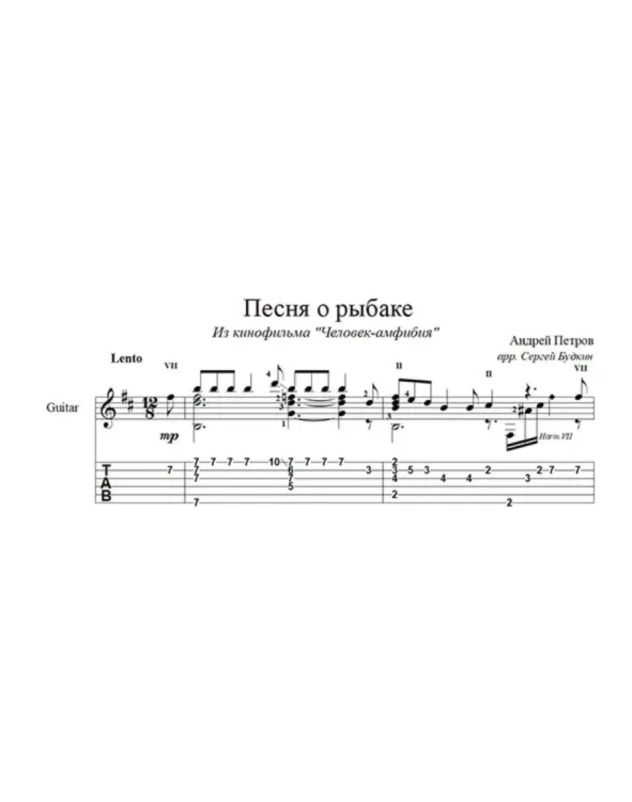 Аранжировка для гитары песни Андрея Петрова из кинофильма "Человек-амфибия".