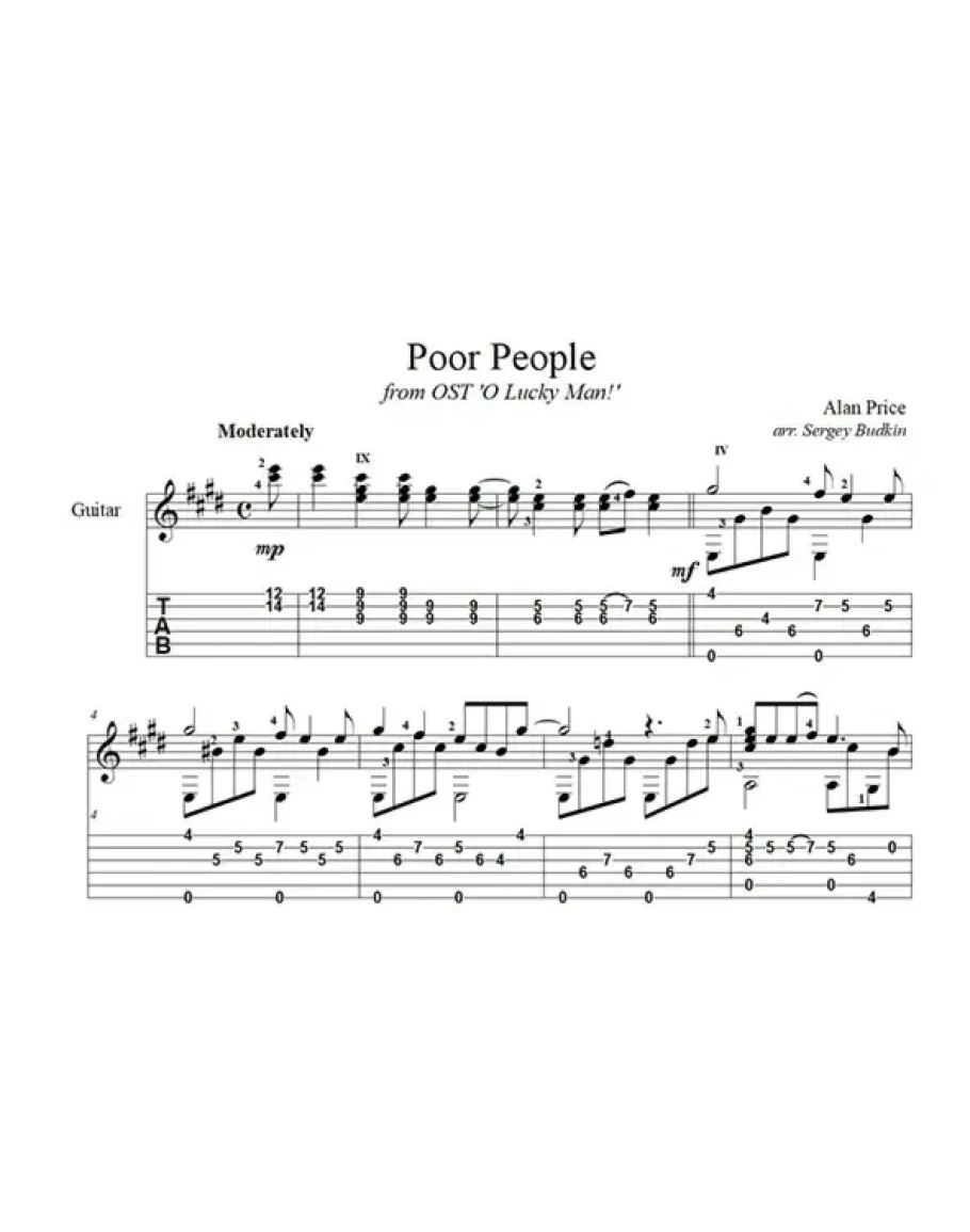 Аранжировка для гитары песни Алана Прайса из кинофильма "О, счастливчик!"