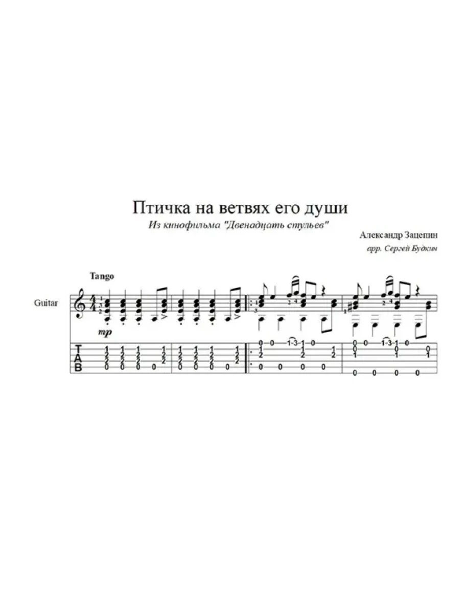 Аранжировка для гитары песни Александра Зацепина в ритме танго из кинофильма "12 стульев".