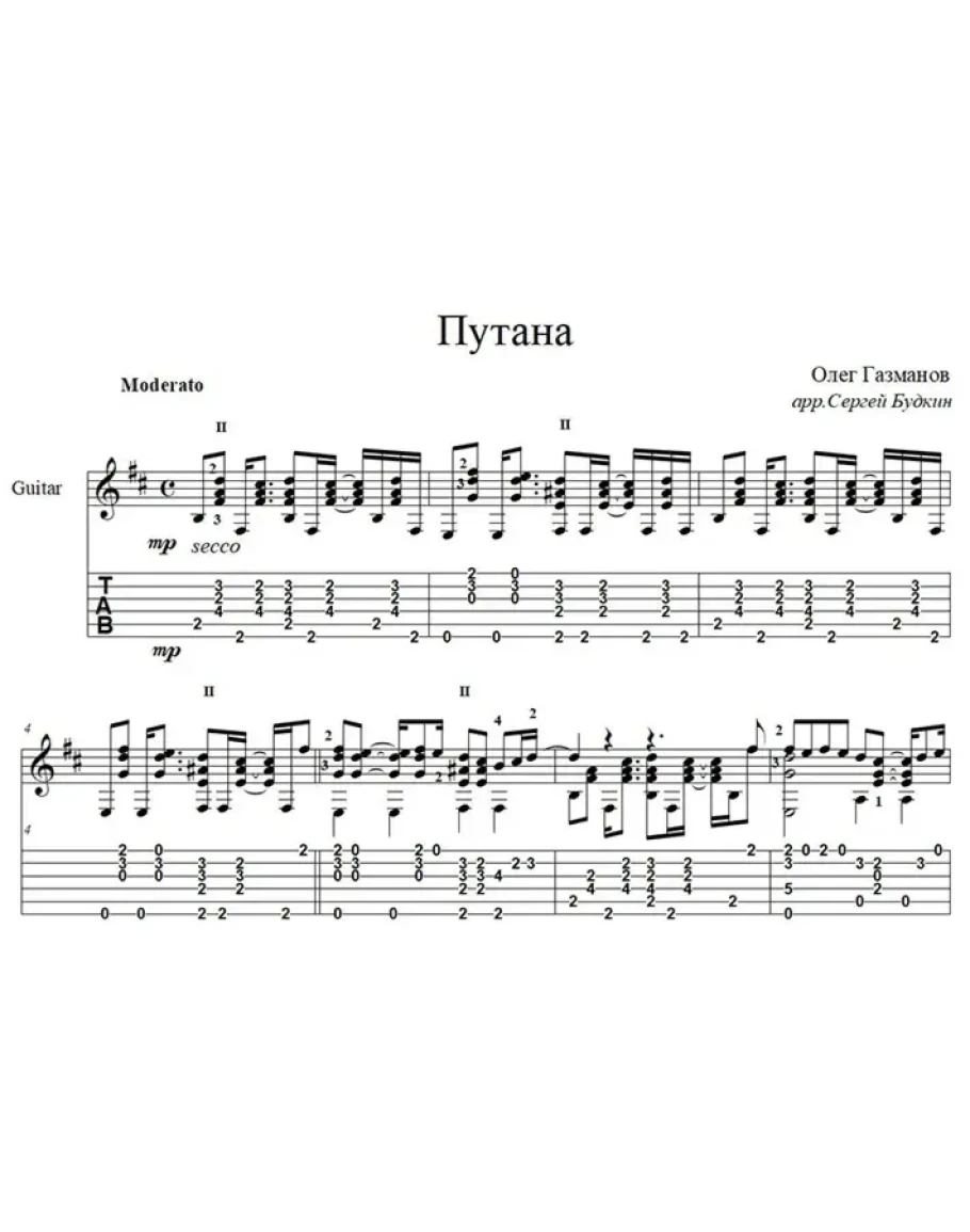Аранжировка для гитары соло песни Олега Газманова.