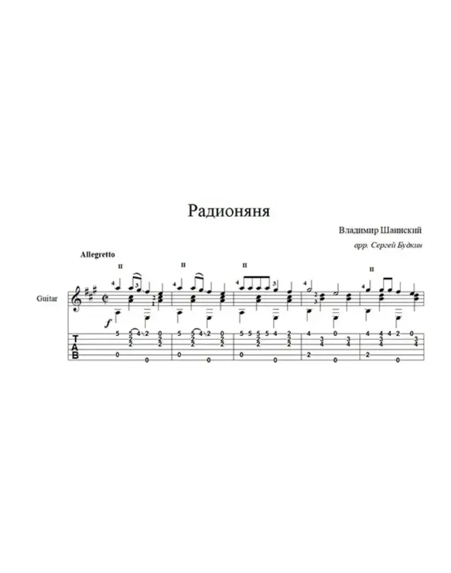 Аранжировка для гитары песенки Владимира Шаинского из детской радиопередачи 1970-х годов "Радионяня".