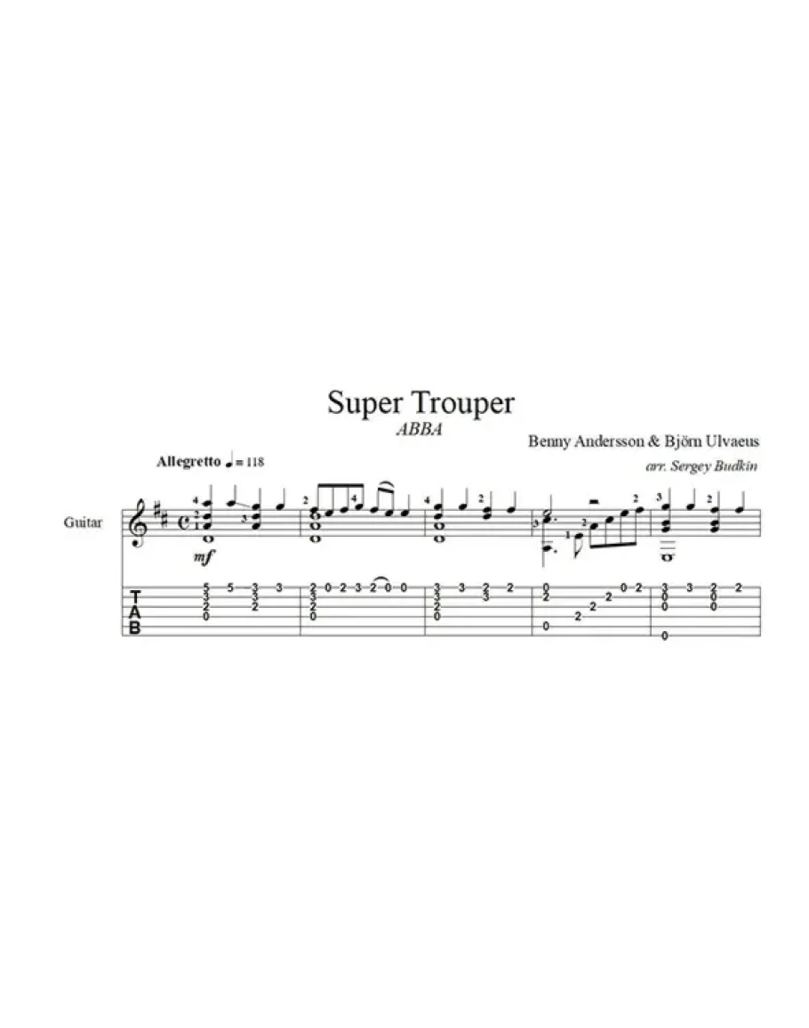 Super Trouper ABBA для гитары