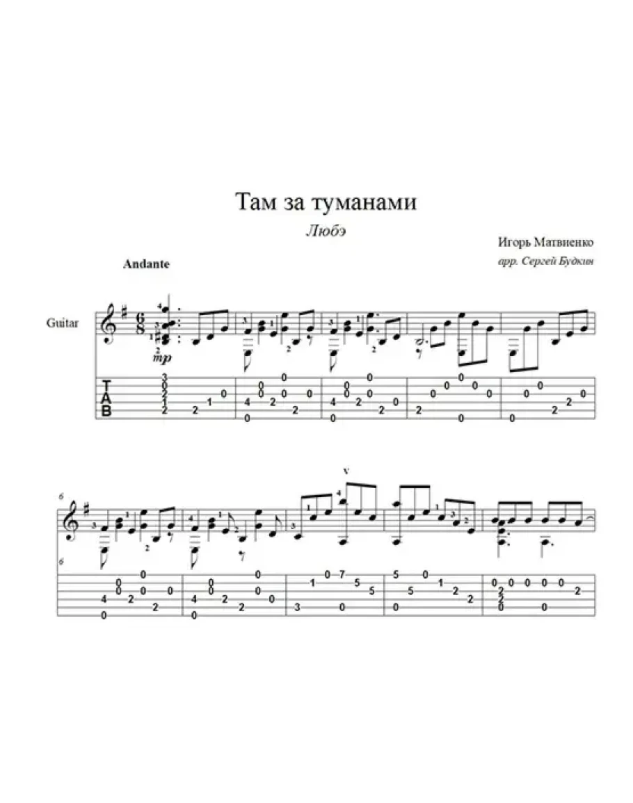 Аранжировка для гитары песни Игоря Матвиенко "Там за туманами" из репертуара группы "Любэ"