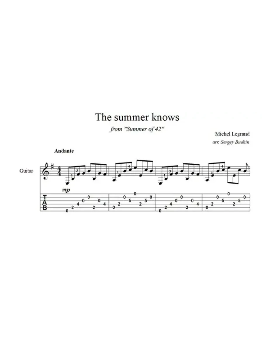 Аранжировка для гитары мелодии Мишеля Леграна из кинофильма "Лето 42-го".