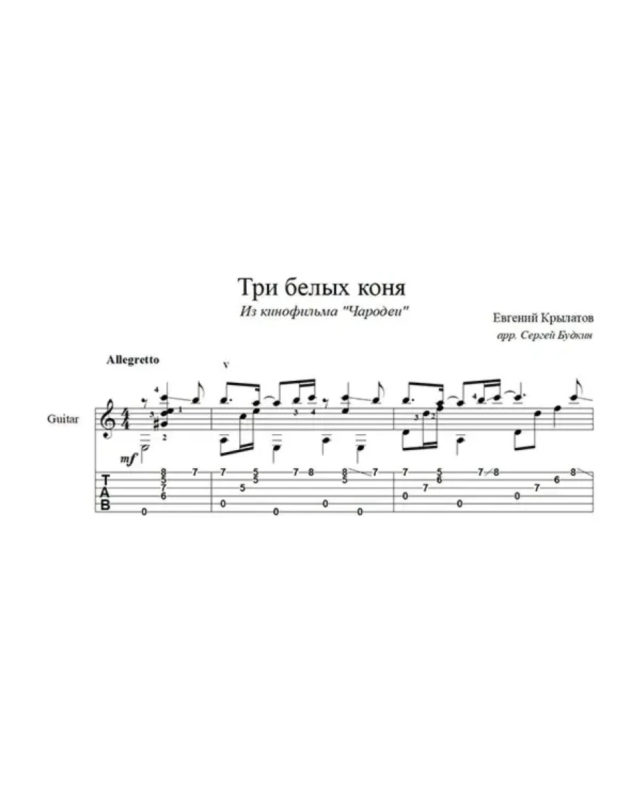 Три белых коня (Чародеи) для гитары