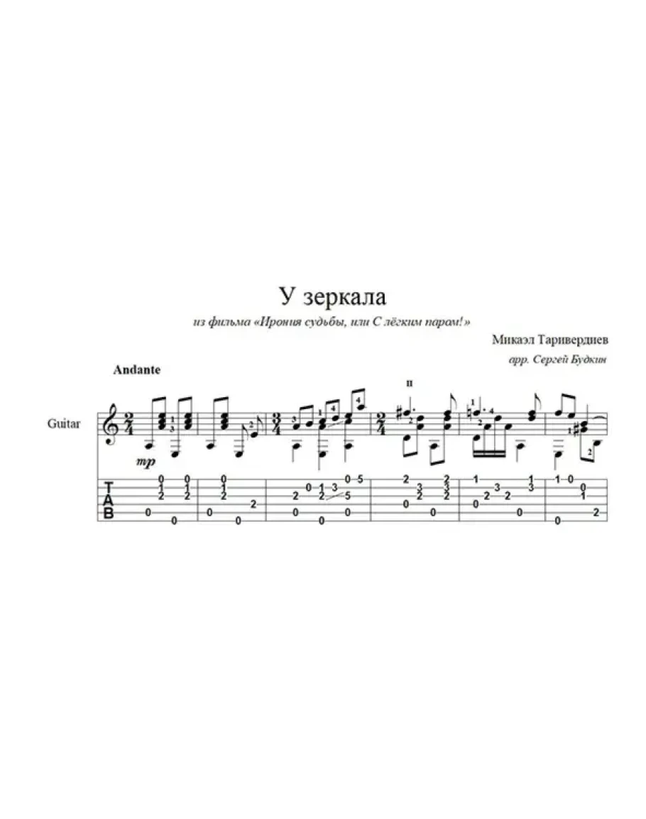 Аранжировка для гитары песни Микаэла Таривердиева из кинофильма "Ирония судьбы, или C лёгким паром!".