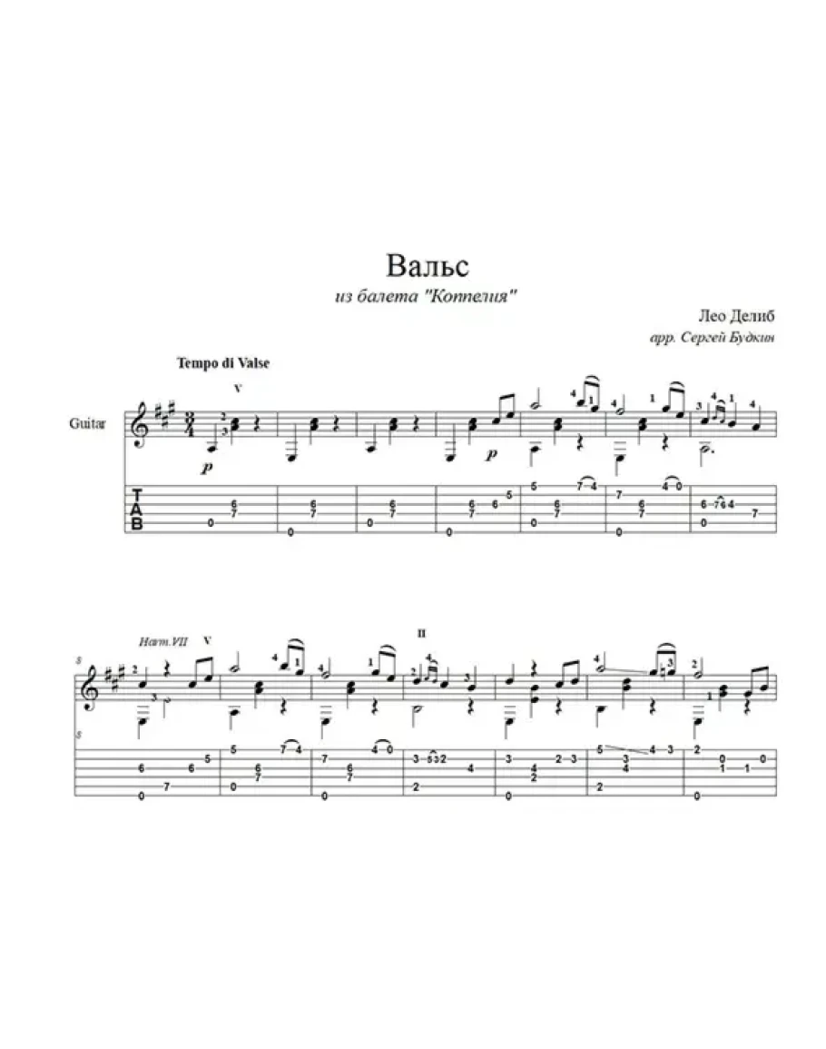 Аранжировка для гитары Вальса Лео Делиба из балета "Коппелия".