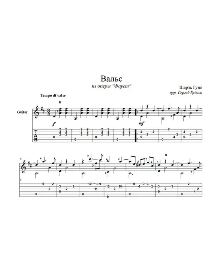 Аранжировка для гитары Вальса из оперы Шарля Гуно "Фауст".