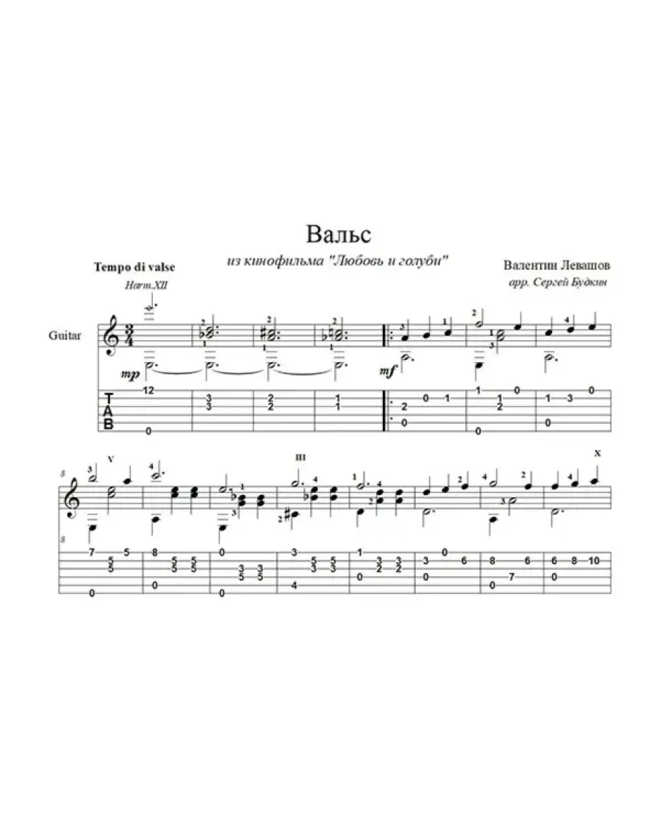 Аранжировка для гитары Вальса Валентина Левашова из кинофильма "Любовь и голуби"