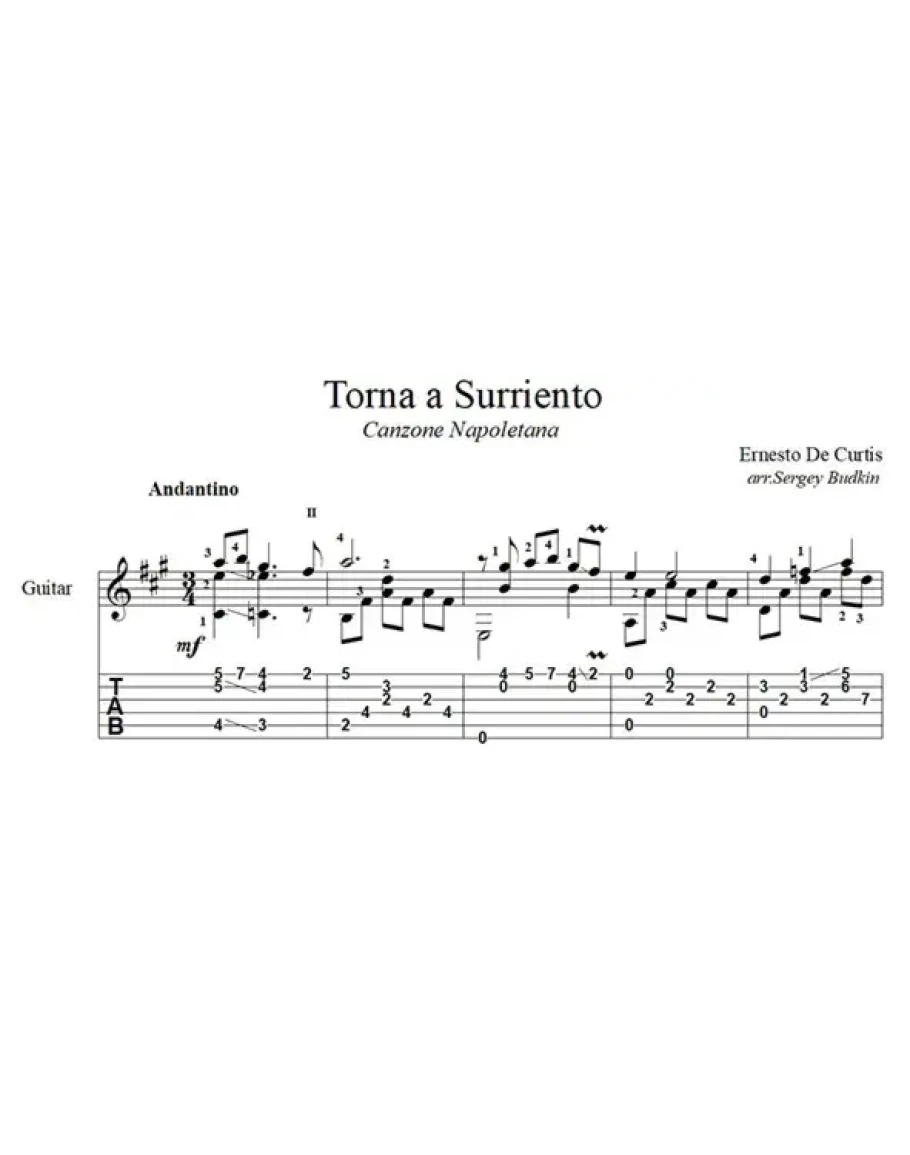Аранжировка для гитары известной неаполитанской песни Эрнесто де Куртиса.