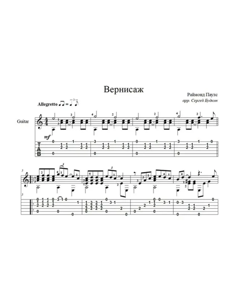 Вернисаж (Раймонд Паулс) ноты для гитары