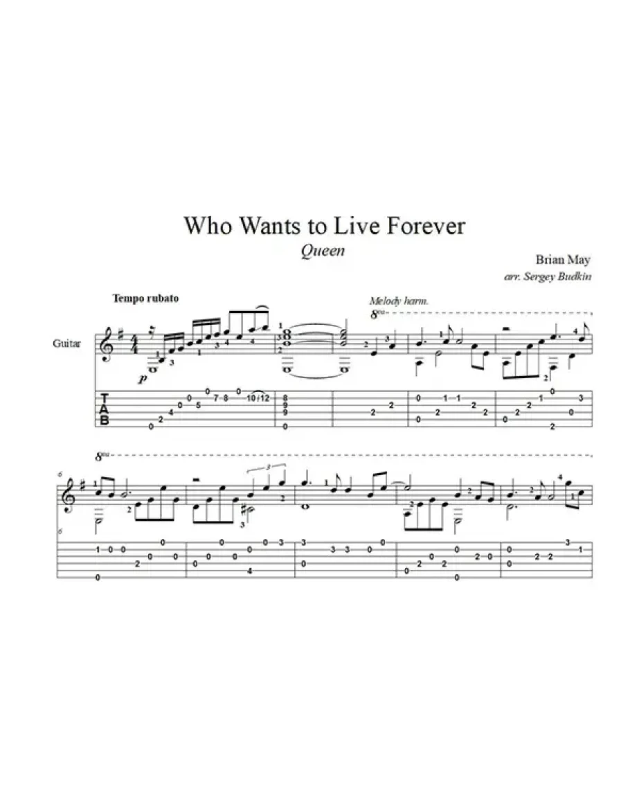 Who Wants to Live Forever (Queen) для гитары