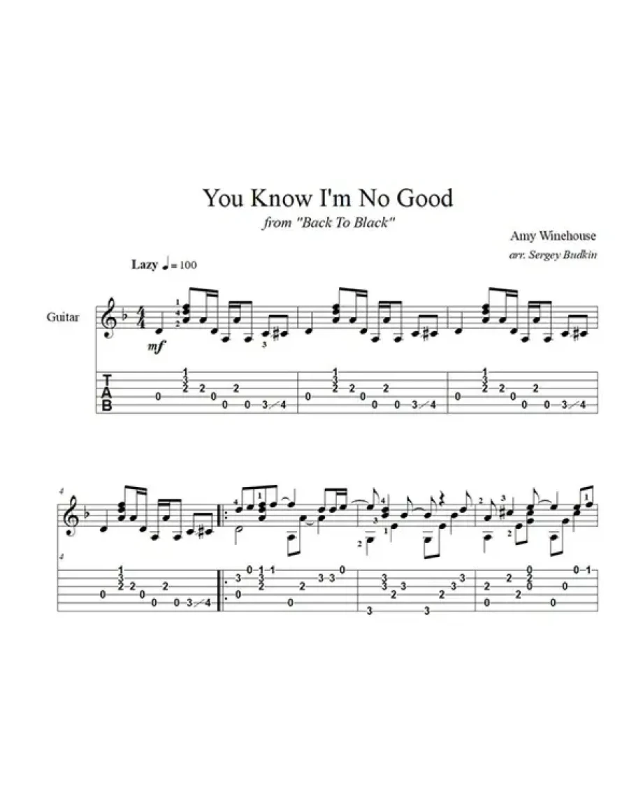 You Know I'm No Good (Эми Уайнхаус) для гитары