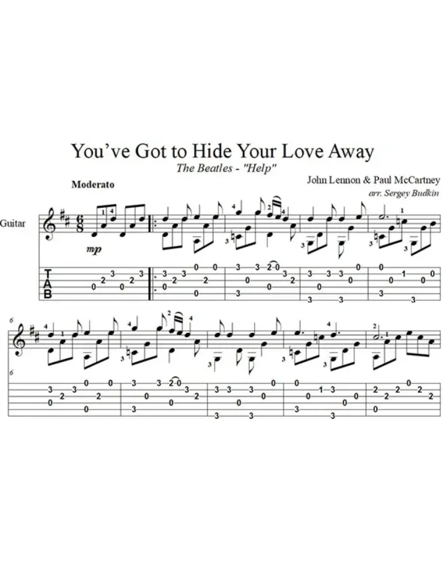 Аранжировка для гитары песни The Beatles из альбома "Help!".
