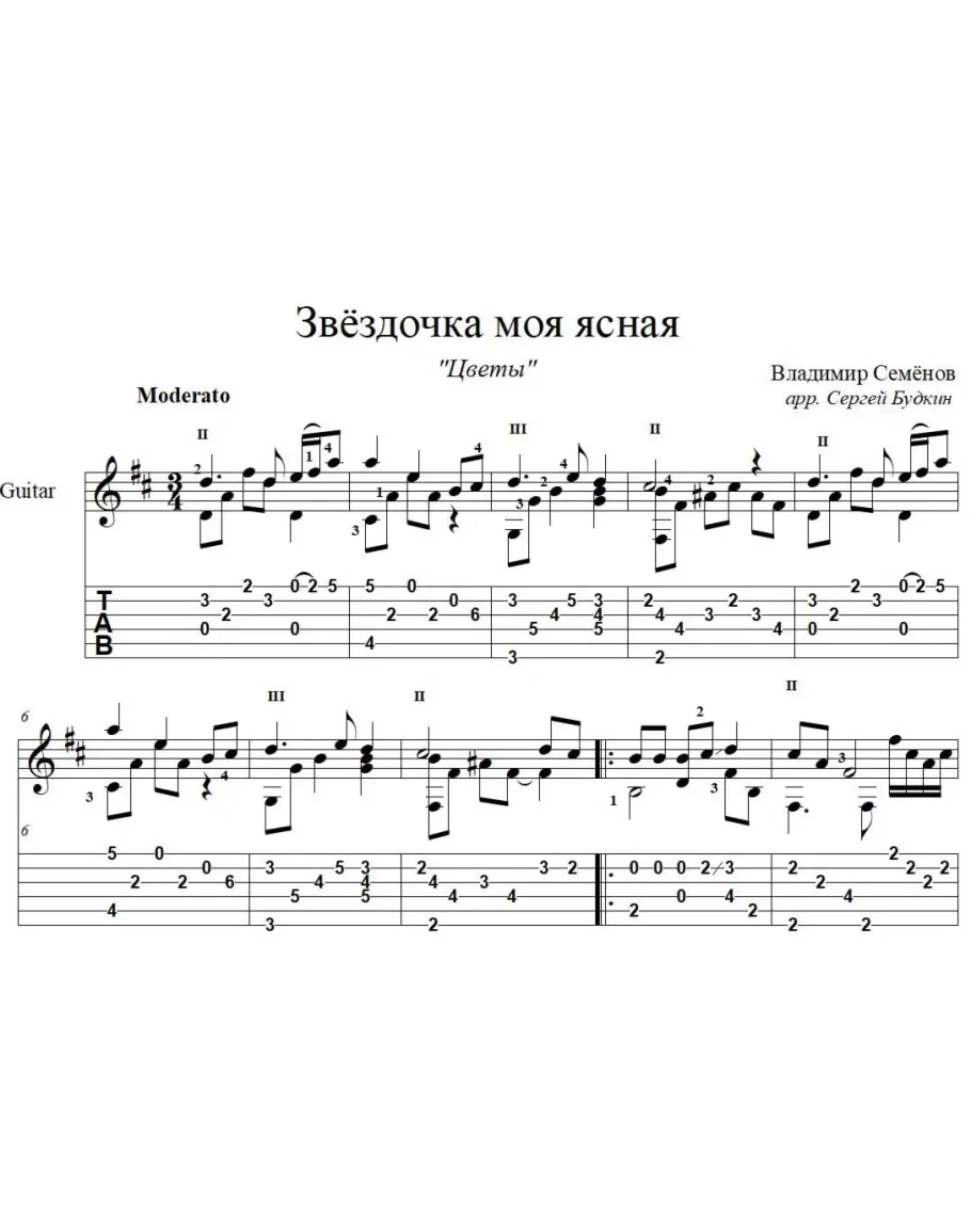 Звёздочка моя ясная (Цветы) для гитары