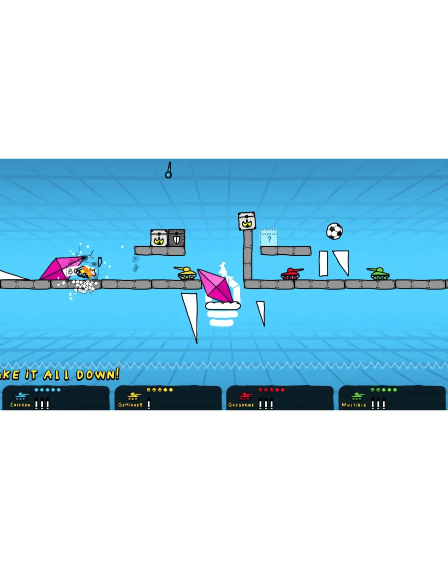 В многопользовательском режиме вам нужно придумать собственный план и расстроить чужие. (Например, подвесным шаром, волшебной палочкой или просто дланью господней). Пока кто-то не добрался до финиша, игроки не выходят из цикла созидания и разрушения. Перехитрите соперников, построив скрытые пути или проявив небывалую жестокость. Побеждает самый коварный игрок.