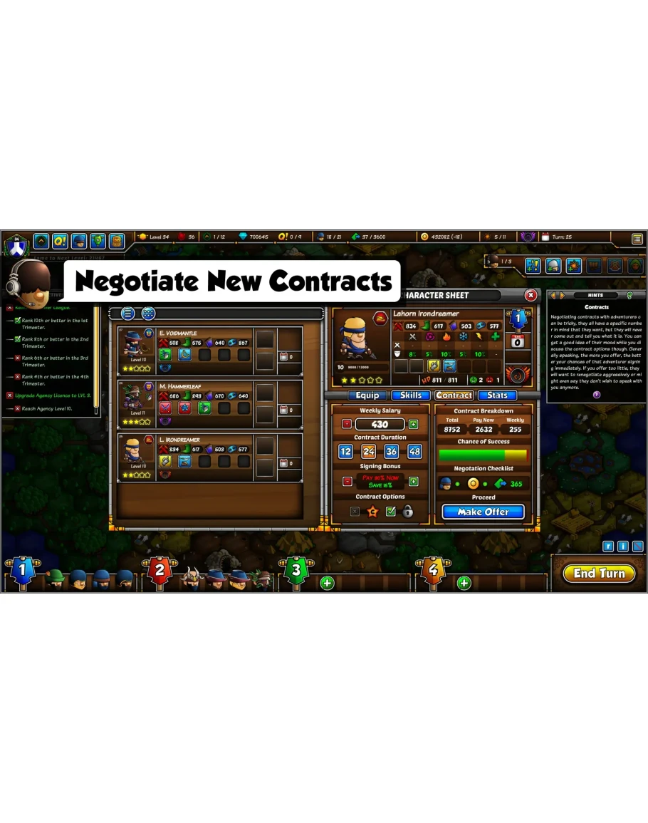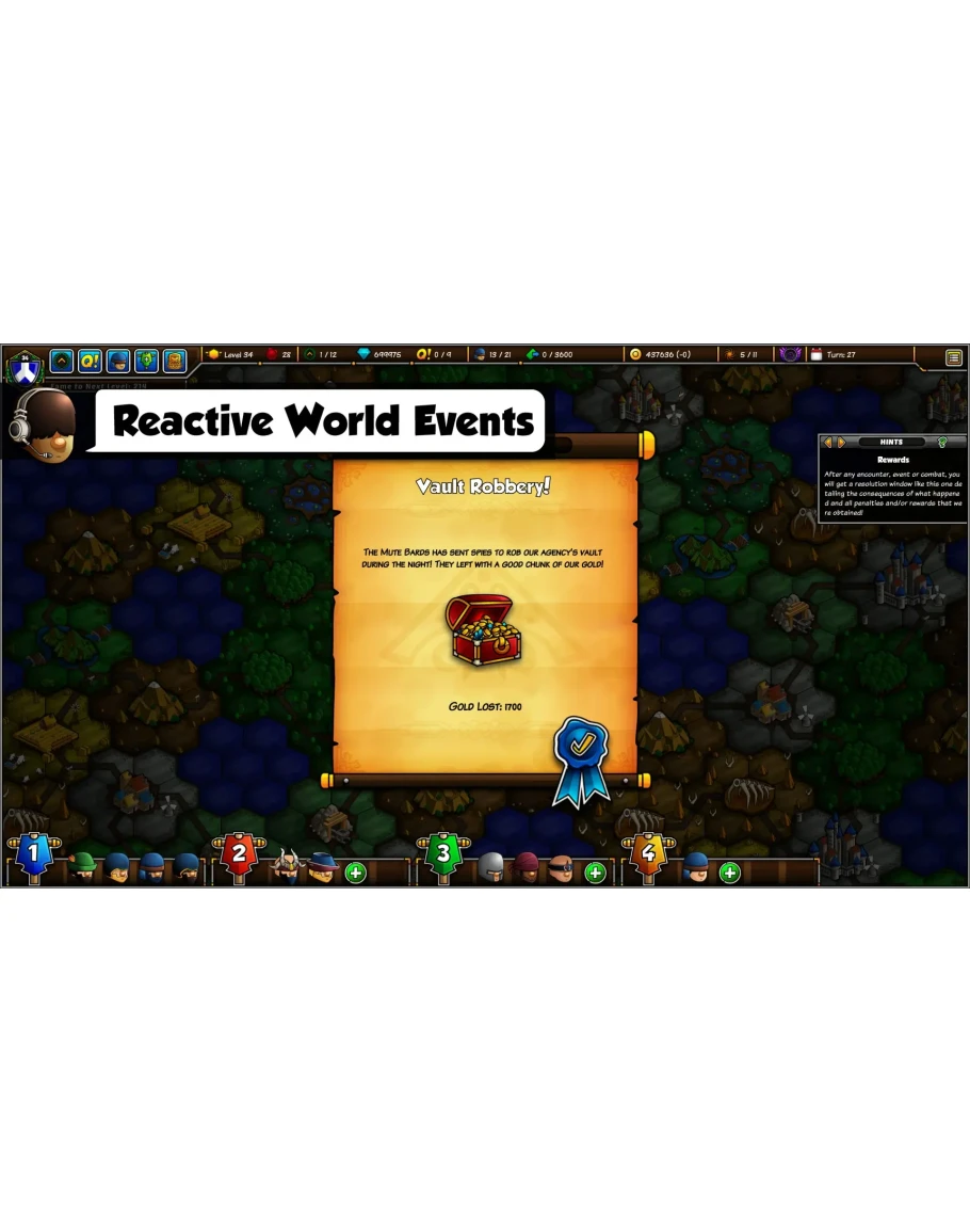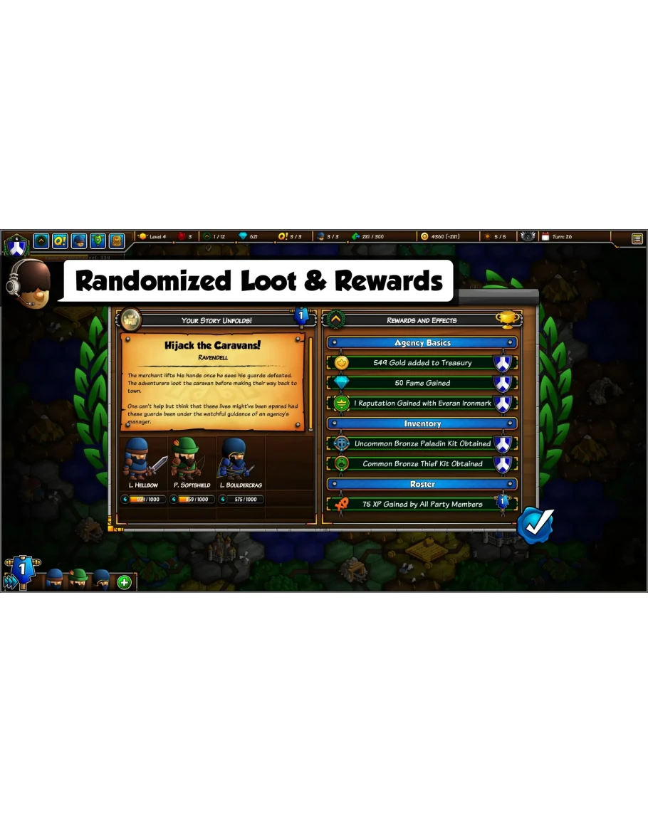 Испытайте захватывающее сочетание стратегии магната, элементов roguelike, управления составом, сражений и развития персонажей «еще один ход», все в эпическом, но беззаботном фэнтезийном сеттинге. Оценка "E" для EPIC!