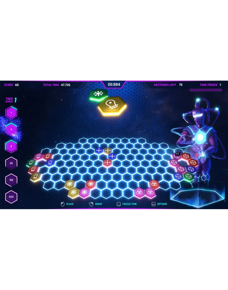 Соединяйте гексстоуны по цвету или символу и прыгайте на световые годы в пространстве-времени, чтобы стать великим исследователем космоса. Сложная игра-головоломка в стиле научной фантастики.