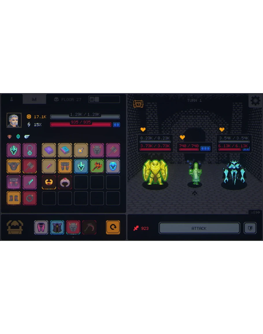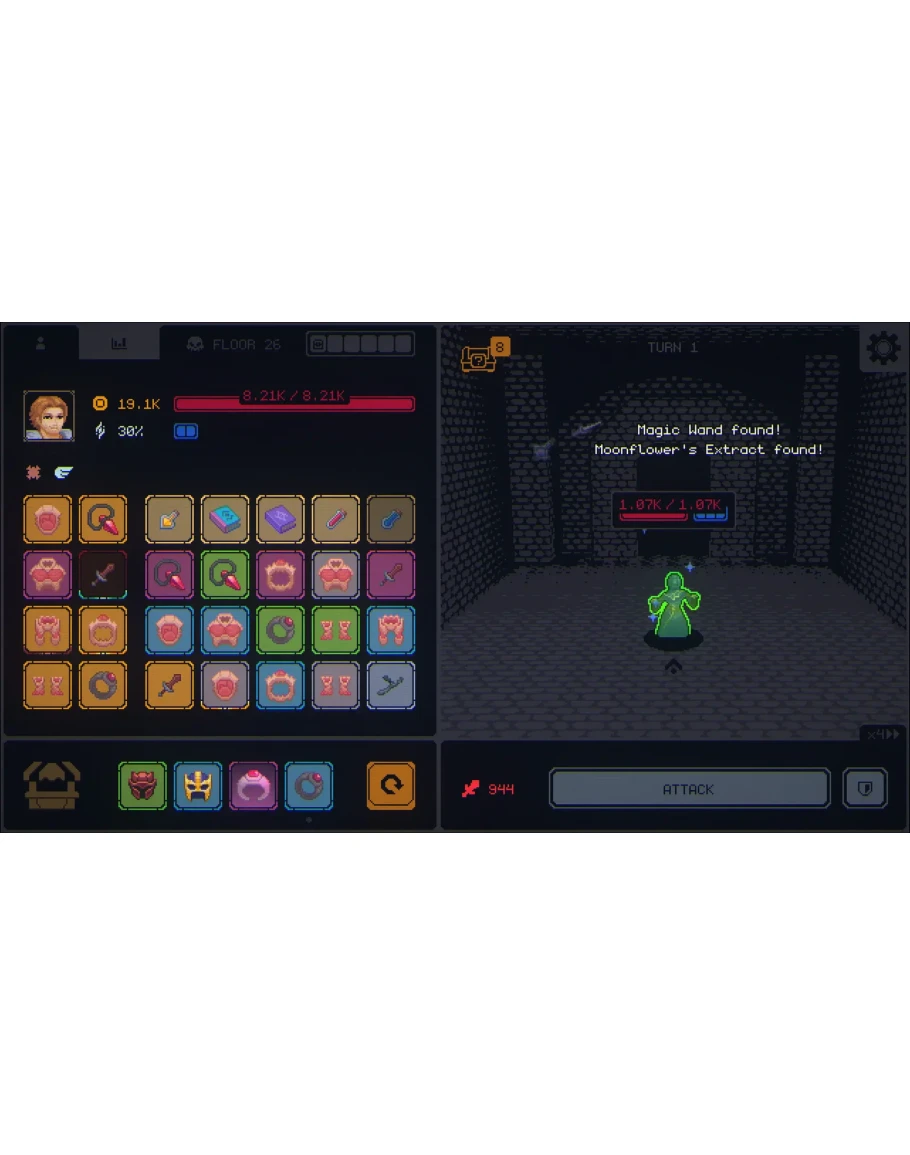 Megaloot - это менеджмент инвентаря в жанре RPG с элементами Roguelike, где тщательное управление лутом открывает путь к созданию разнообразных и мощных билдов.