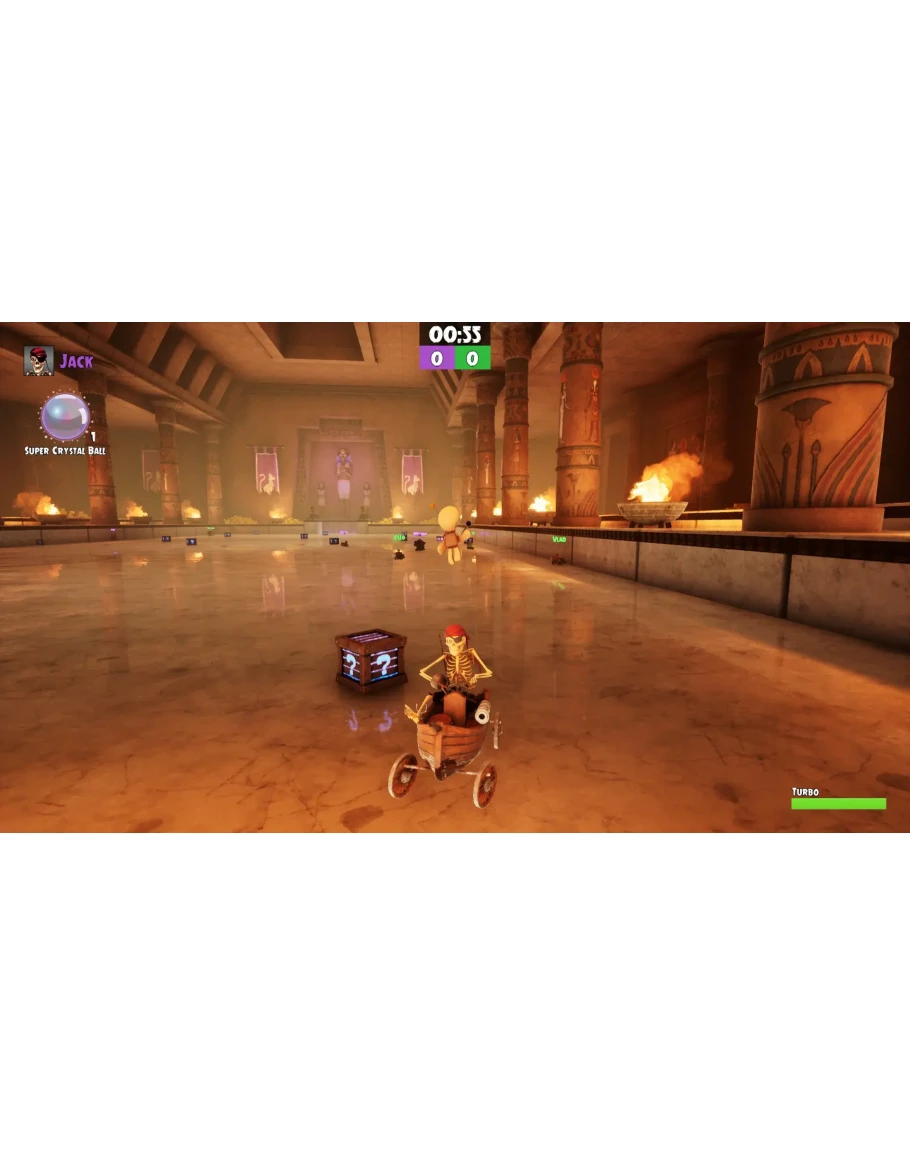Устраивайтесь поудобнее с друзьями и семьей, подключайтесь и побеждайте в безумных гонках, забивайте голы и поджигайте взрывоопасные тыквы.