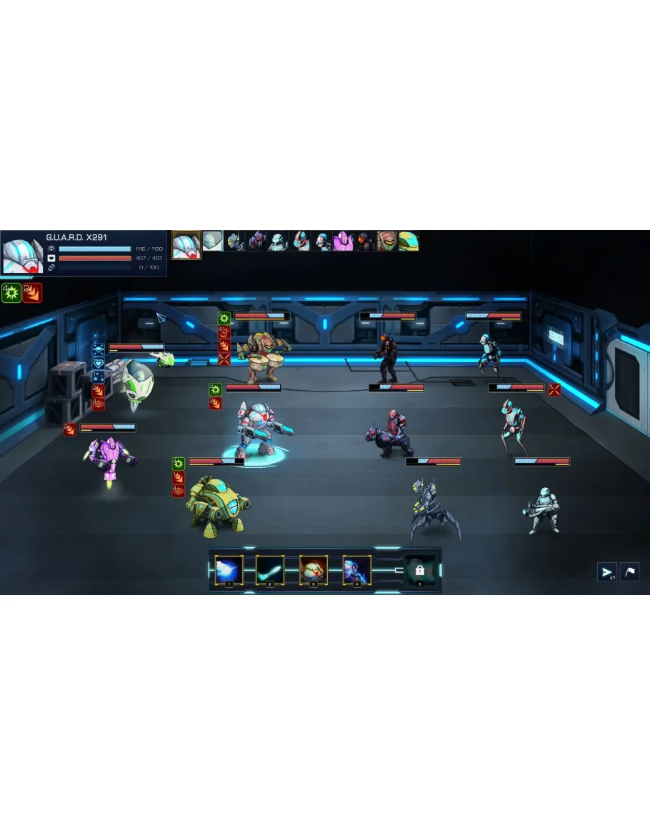 Выбирайте из 8 классов роботов! Составьте команду мечты, которая лучше всего будет соответствовать вашей стратегии. Сразитесь с армией врагов, наделенных уникальной механикой, и победите корпорацию BreakTech!