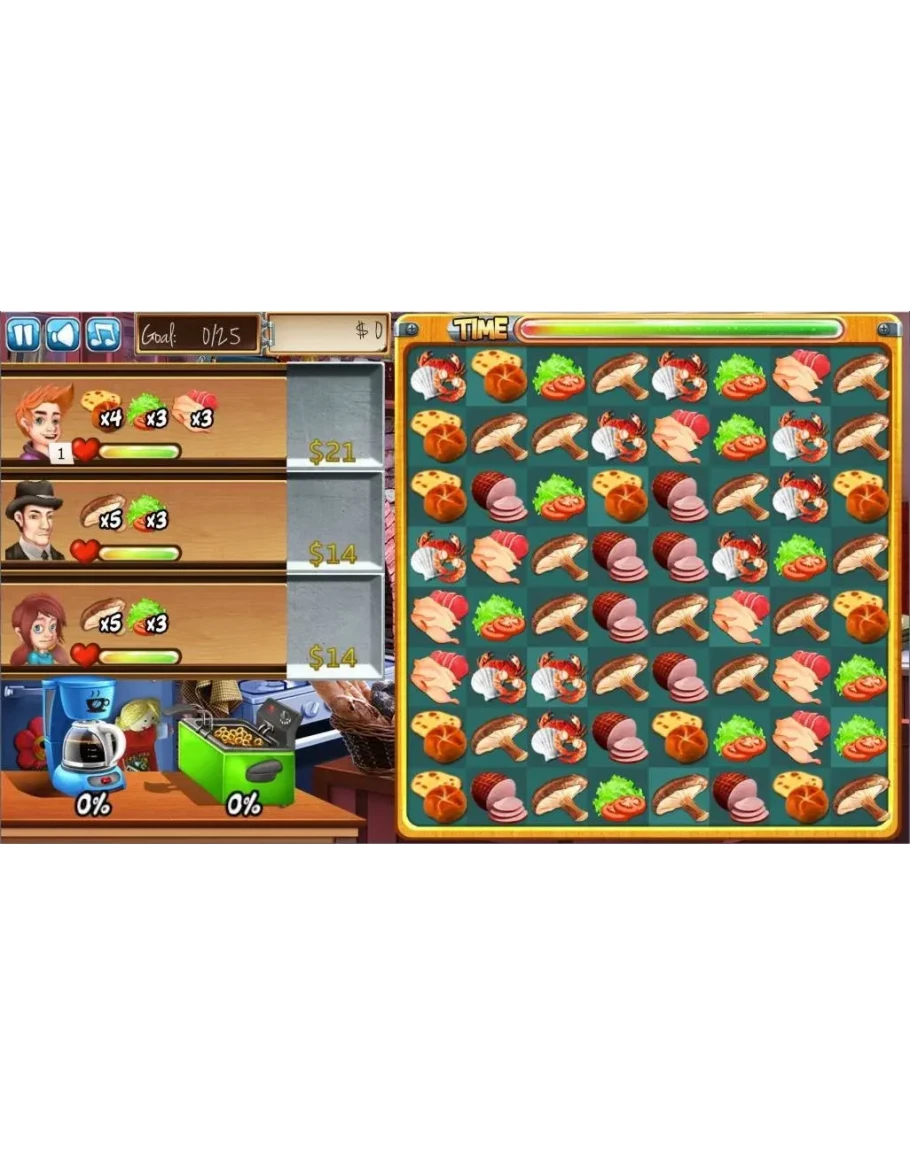 В ресторане Rory's Winter Rush вас ждет удивительное сочетание игры Match3 и кулинарии!