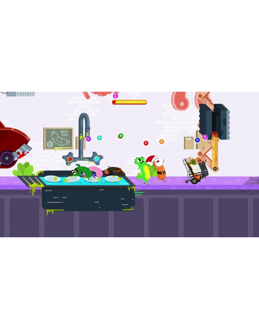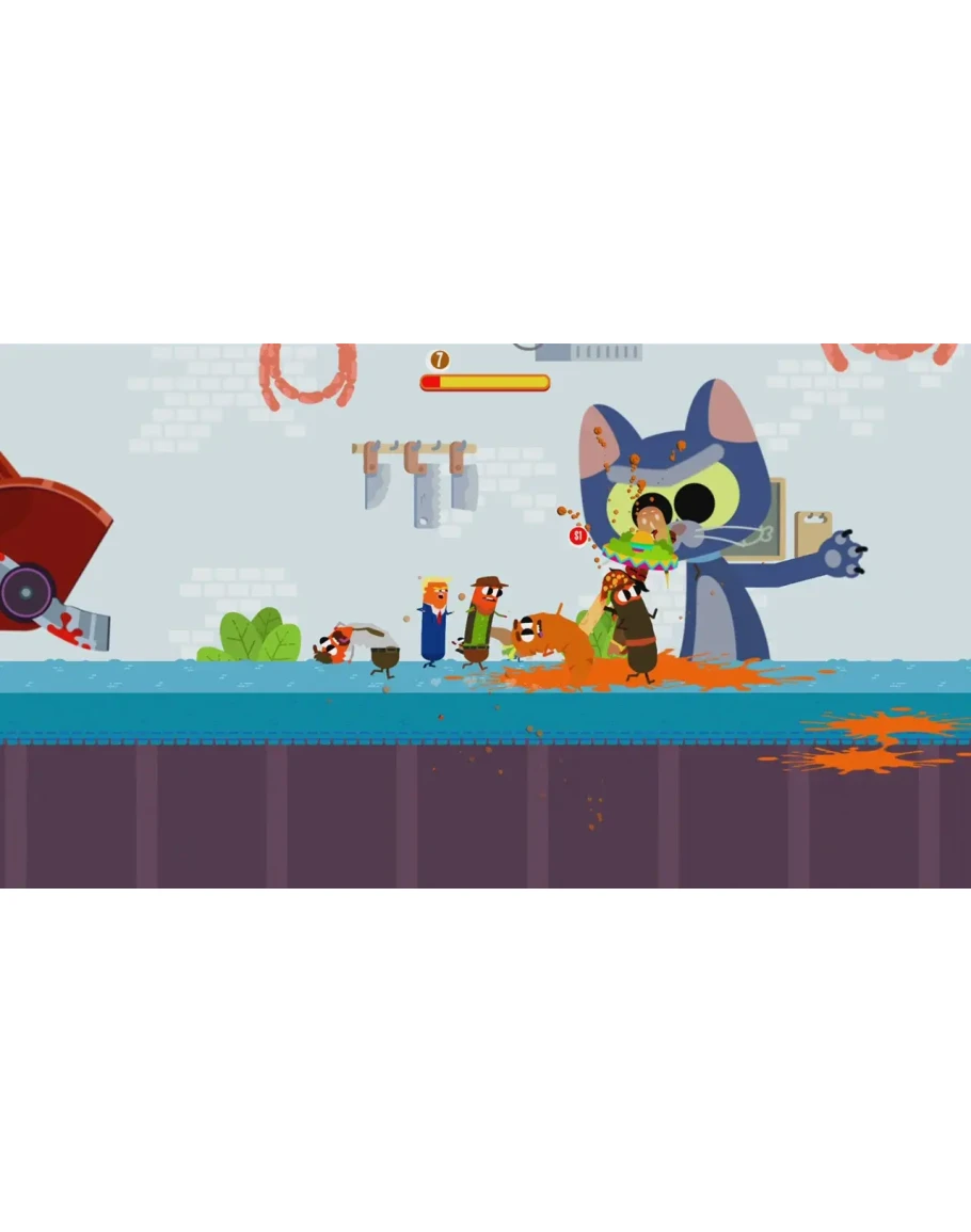 "Самая захватывающая гонка колбас в мире! Дайте телам упасть на пол в ванне из кетчупа!"