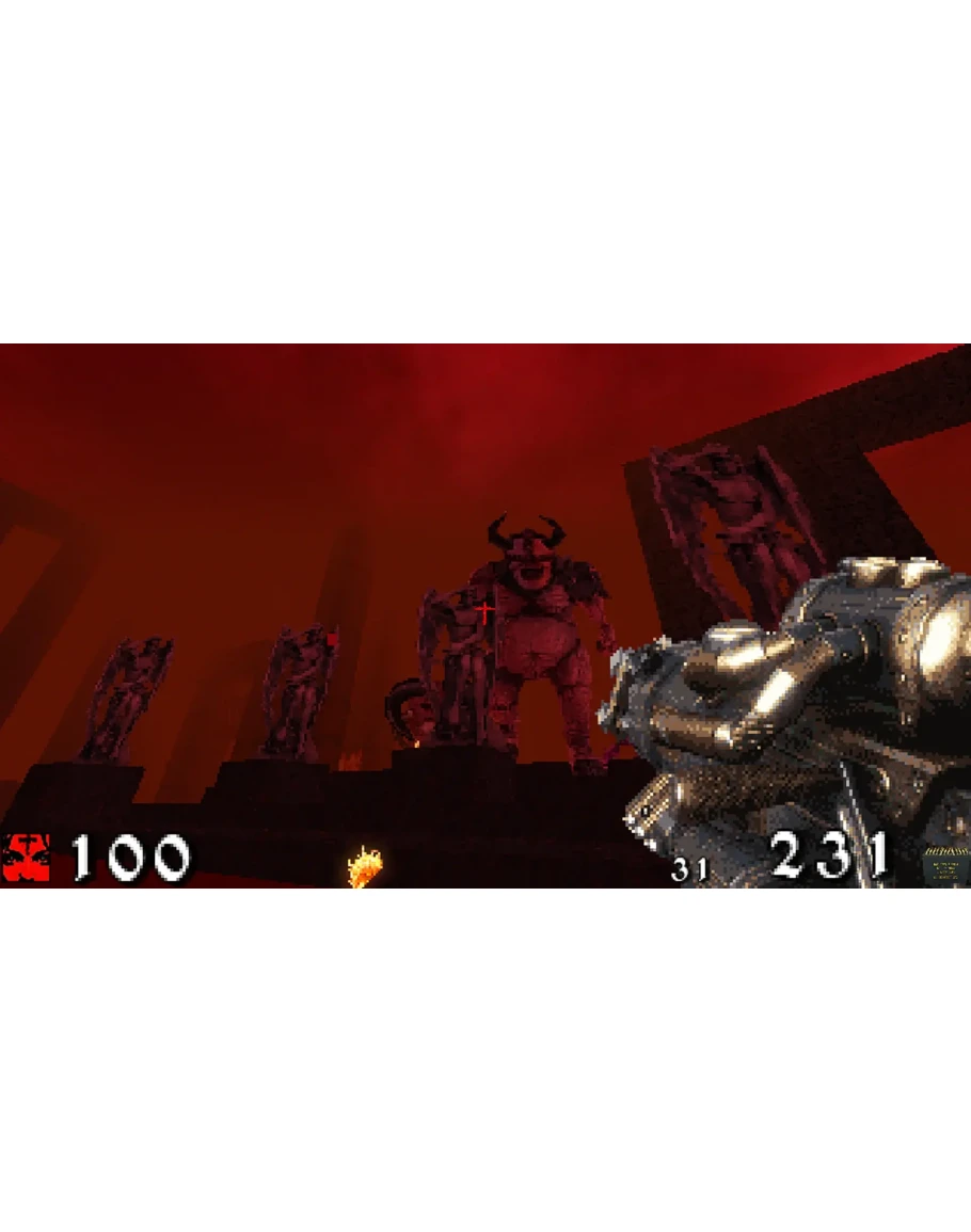 Испытайте острые ощущения от ретро-шутеров в этой захватывающей игре, где вам предстоит сражаться с ордами демонов и столкнуться с главным испытанием: самим Сатаной.