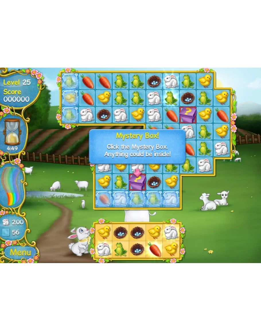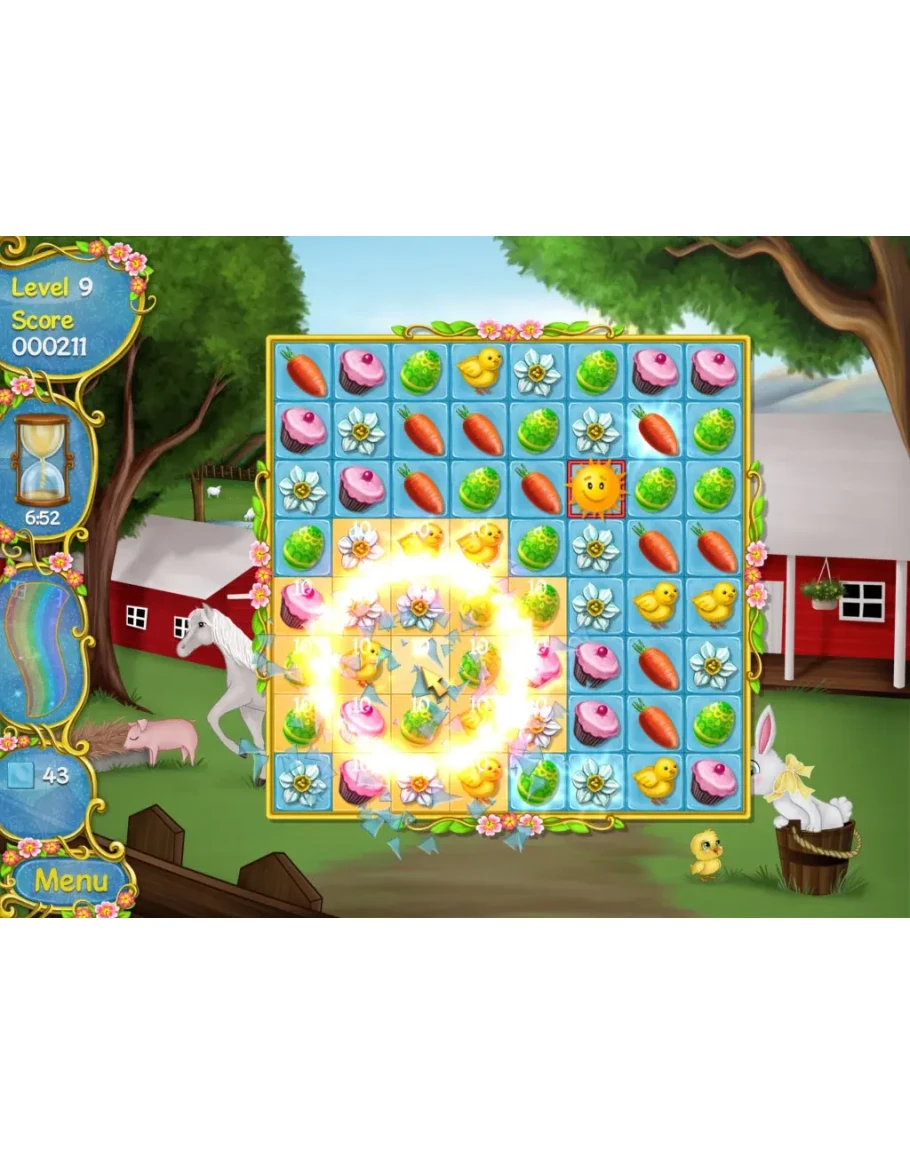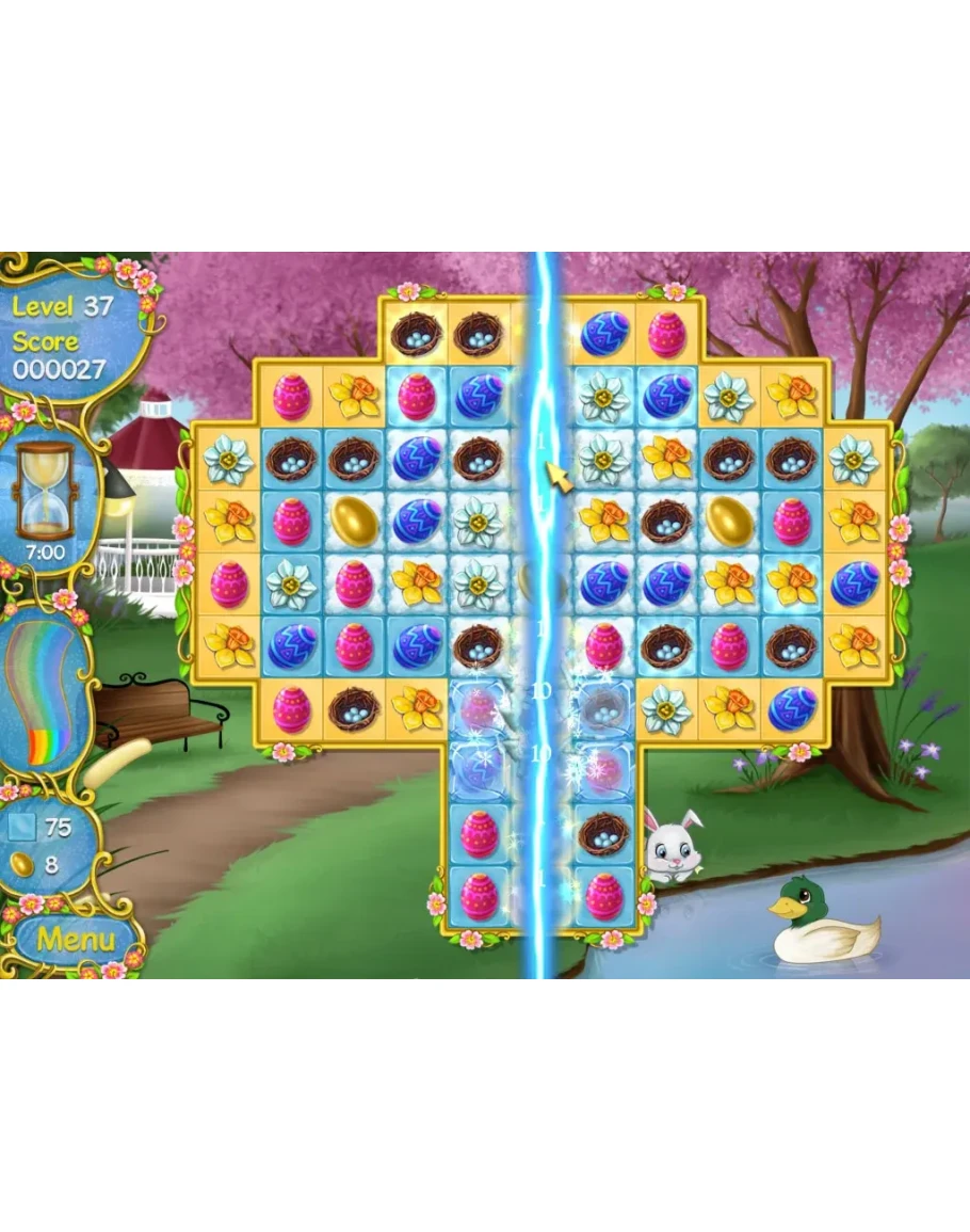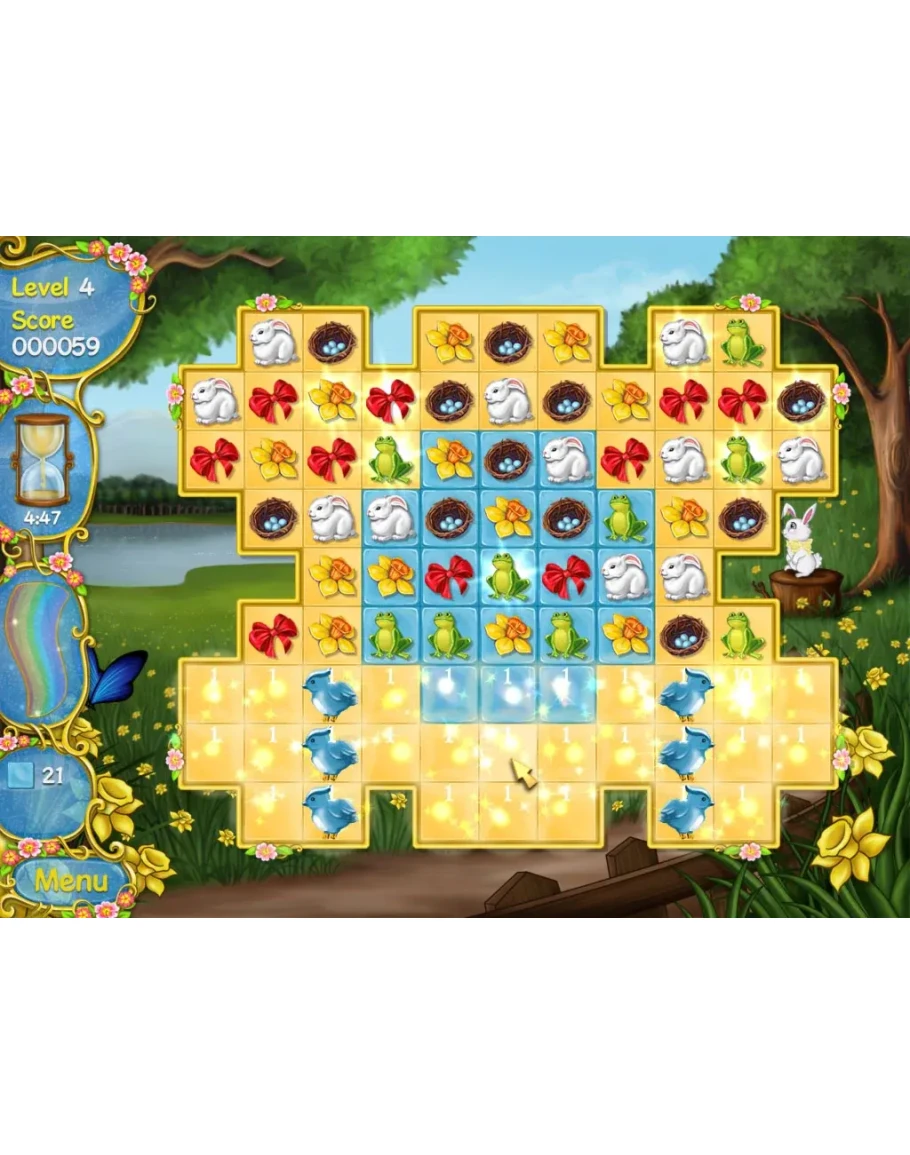 Путешествуйте по красивой весенней сельской местности с пасхальным кроликом в этой очаровательной игре в жанре «три в ряд».