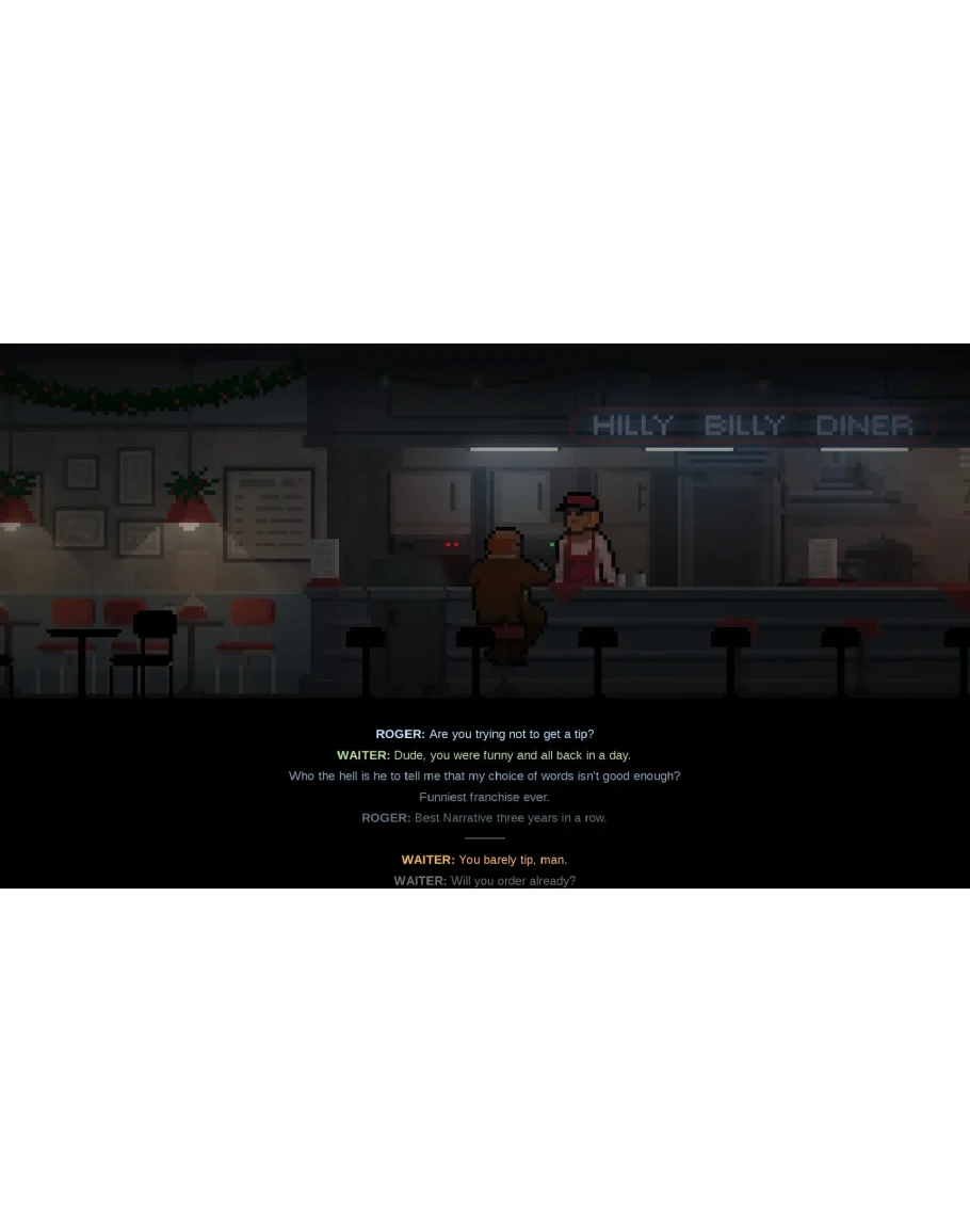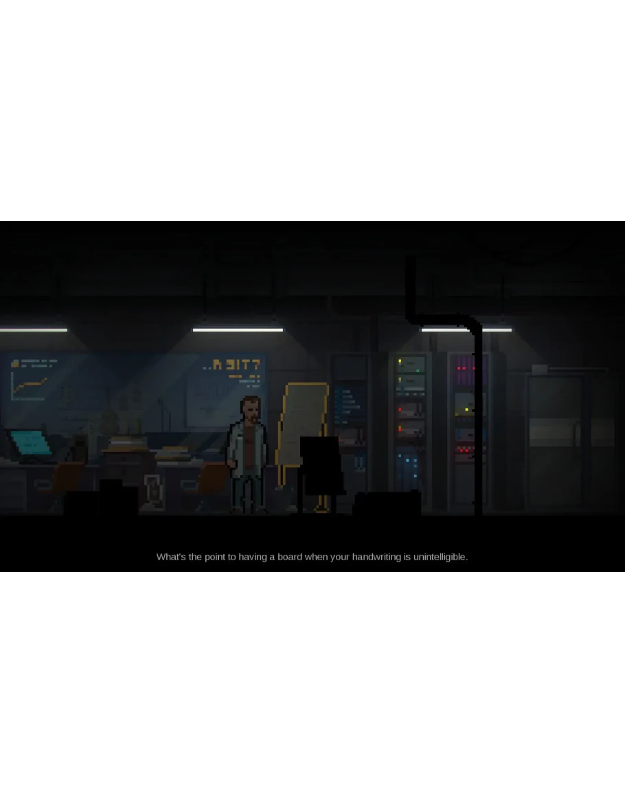 12 тысячами слов диалогов и сценария, нарисованными вручную пиксельными изображениями и оригинальной музыкой.