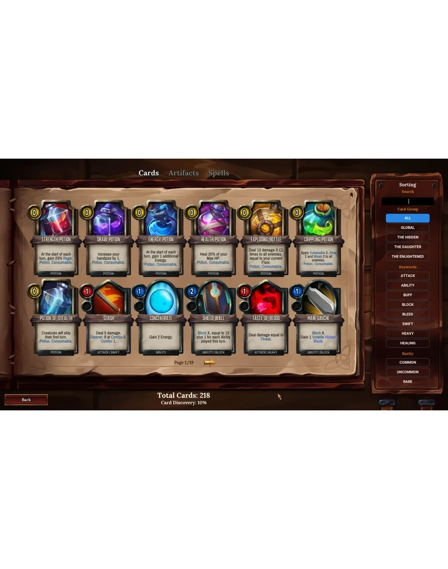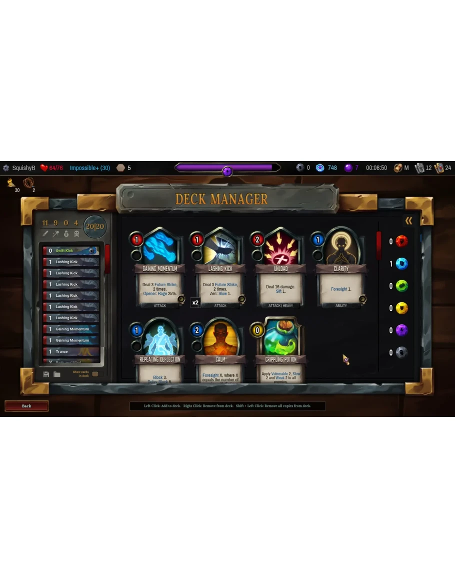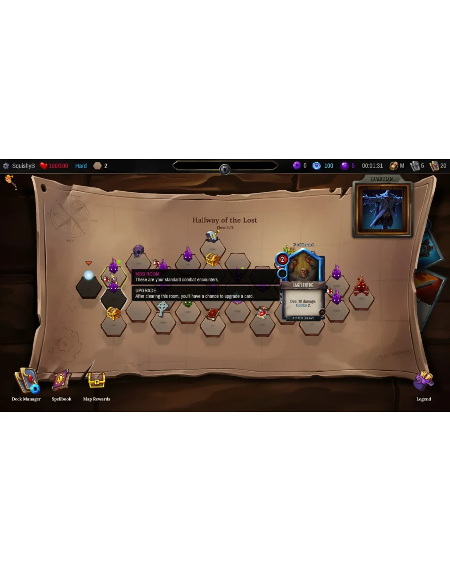 A CCG roguelite experience. Use your sideboard to swap in and out cards as you progress, perfecting the ultimate combos.