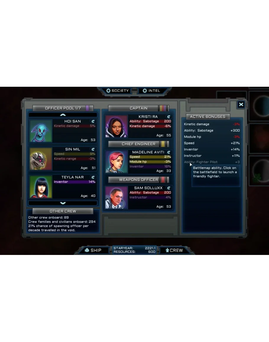 Уникальные умения членов экипажа. У каждого члена команды есть свои сильные и слабые стороны, которые влияют на особые способности вашего корабля.
