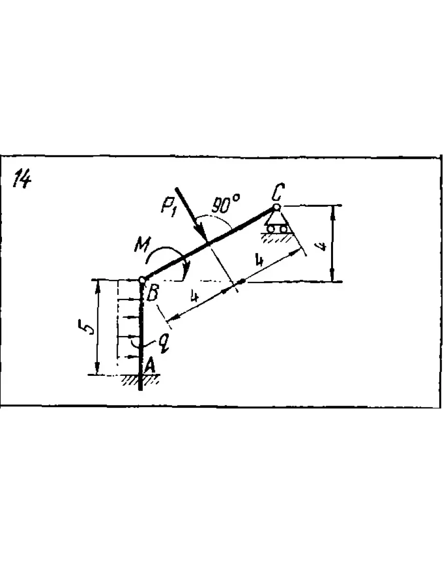 Решение задачи С5 вариант 14 из решебника по теоретической механике Яблонский А.А. 1978 г., на тему: С5 Определение реакций опор составной конструкции (система двух тел) (стр. 29 задачника)..