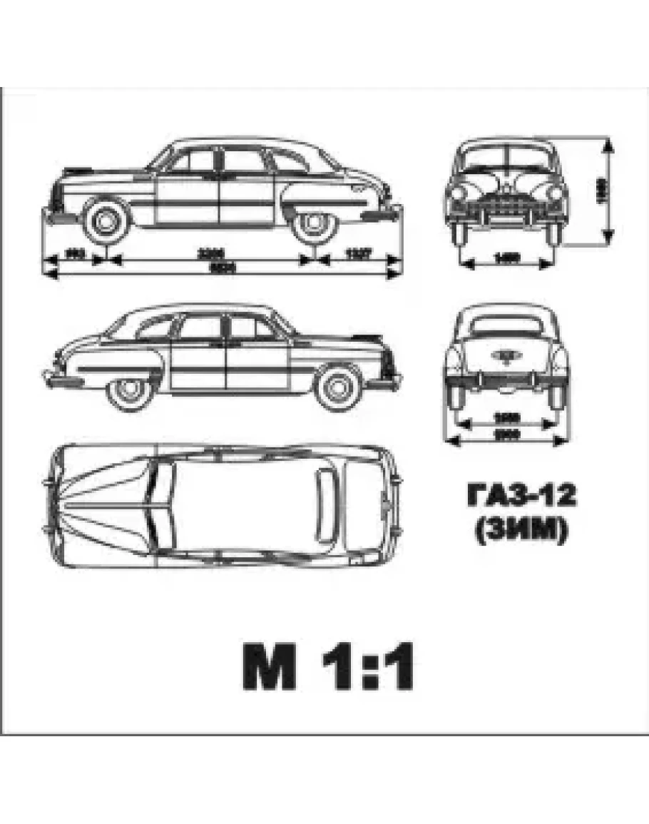 Чертеж автомобиля с габаритными размерами Газ-12 в векторном формате