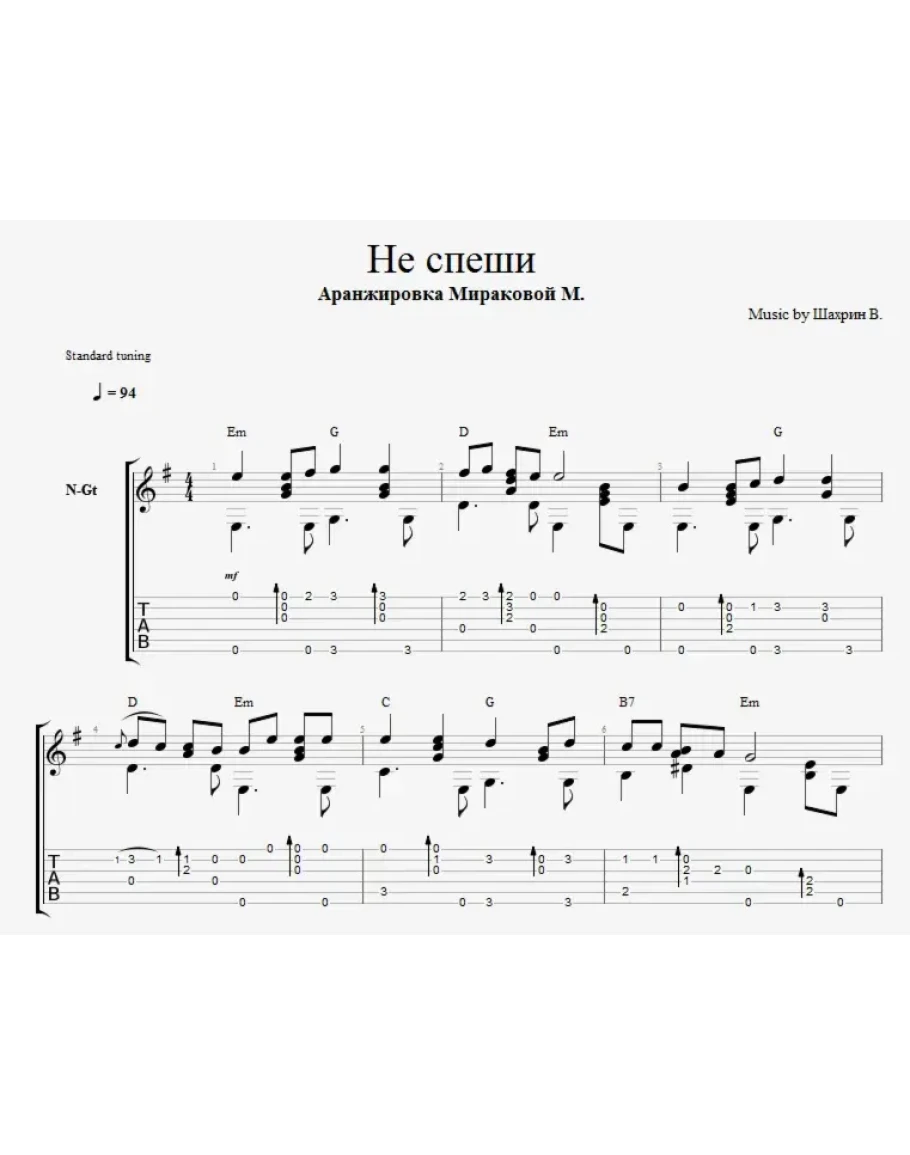 Авторская аранжировка для шестиструнной гитары от Марины Мираковой на композицию "Не спеши" группы "Чайф".