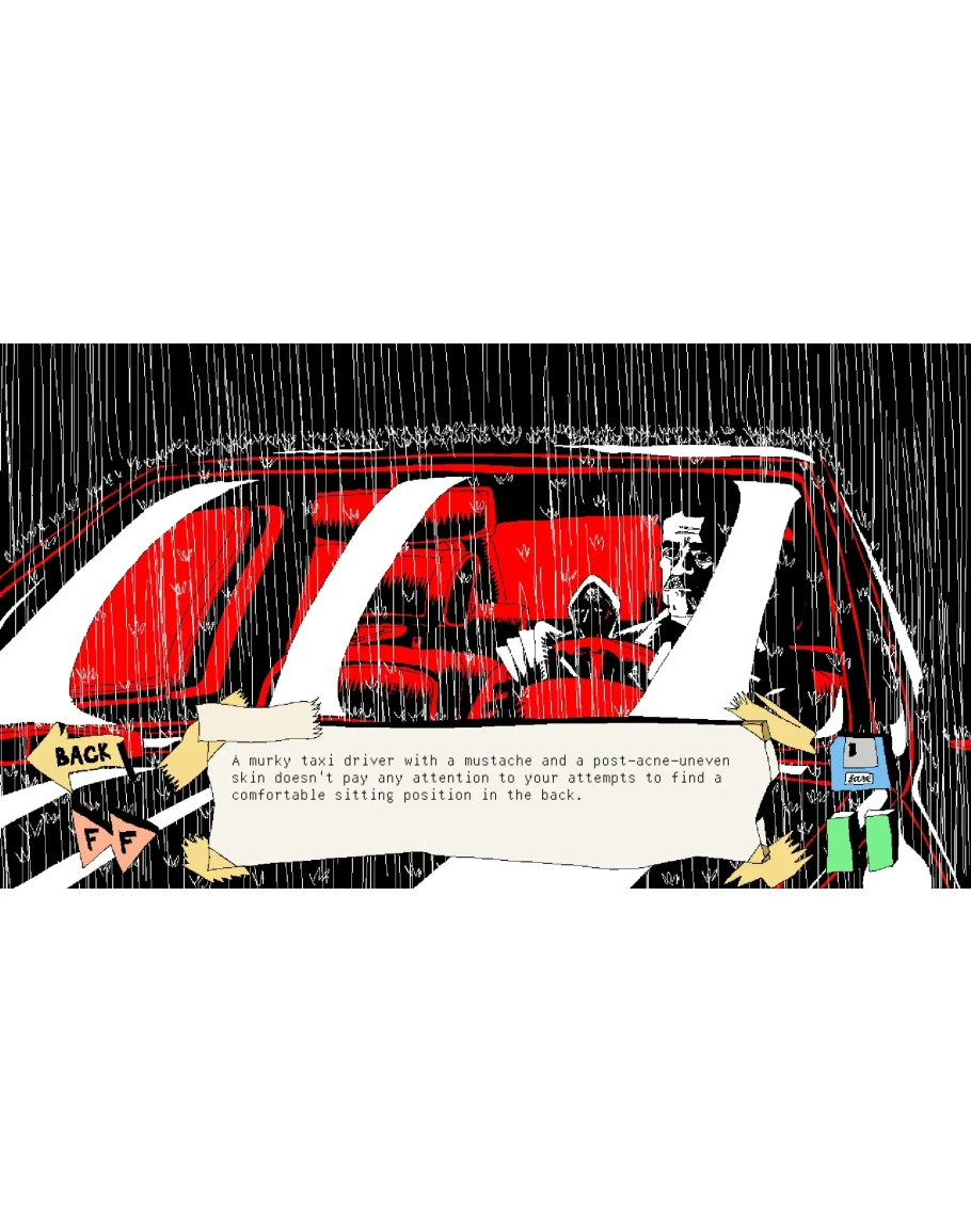 Чел, я просто хочу домой - это визуальная новелла в жанре "MSPaint-нуар" с 13 концовками, уникальным графическим стилем и убийственным саундтреком в стиле 80-х. История вращается вокруг курьера, застрявшего в незнакомой части города под жутким ливнем. Все, чего он хочет - это добраться до дома.