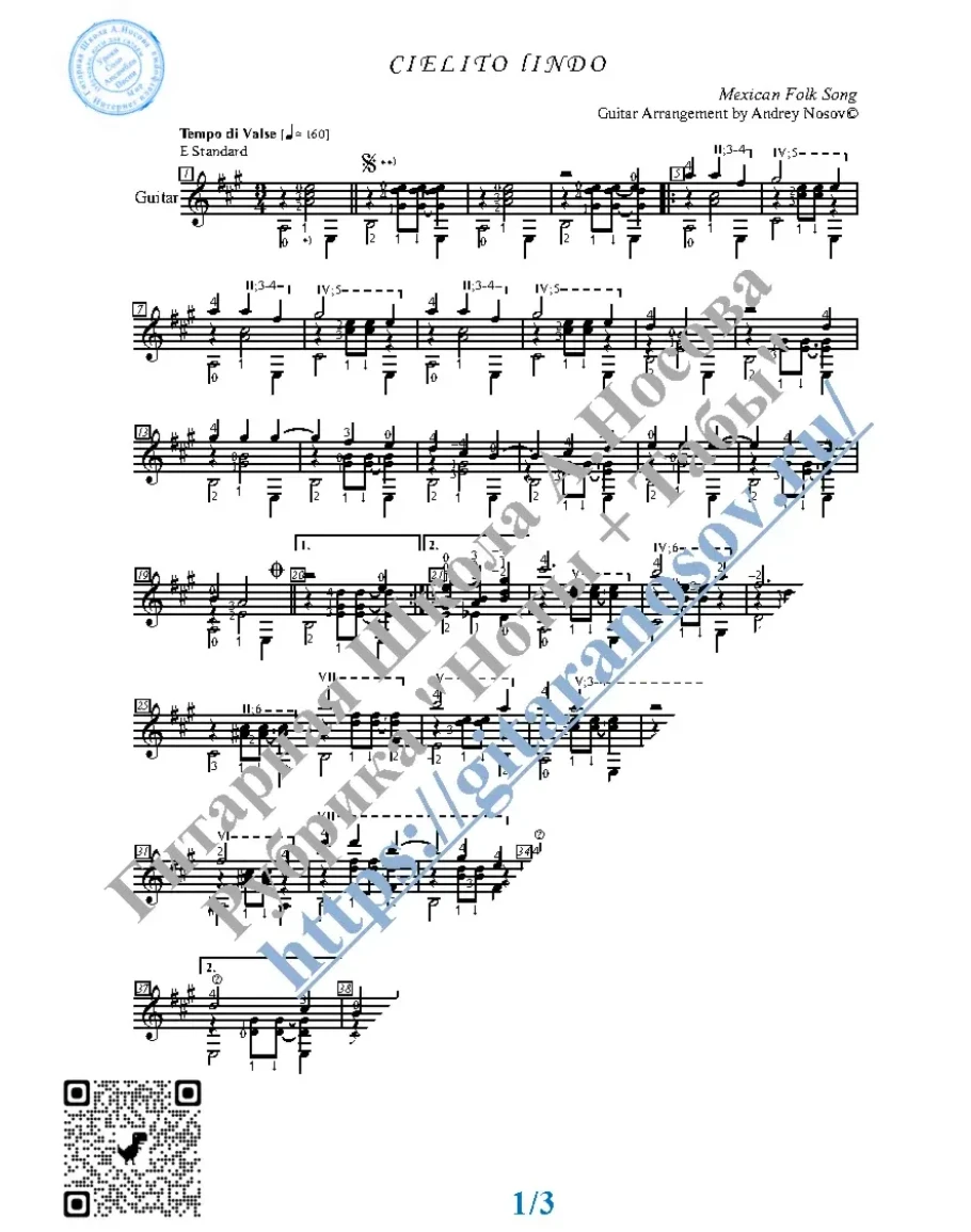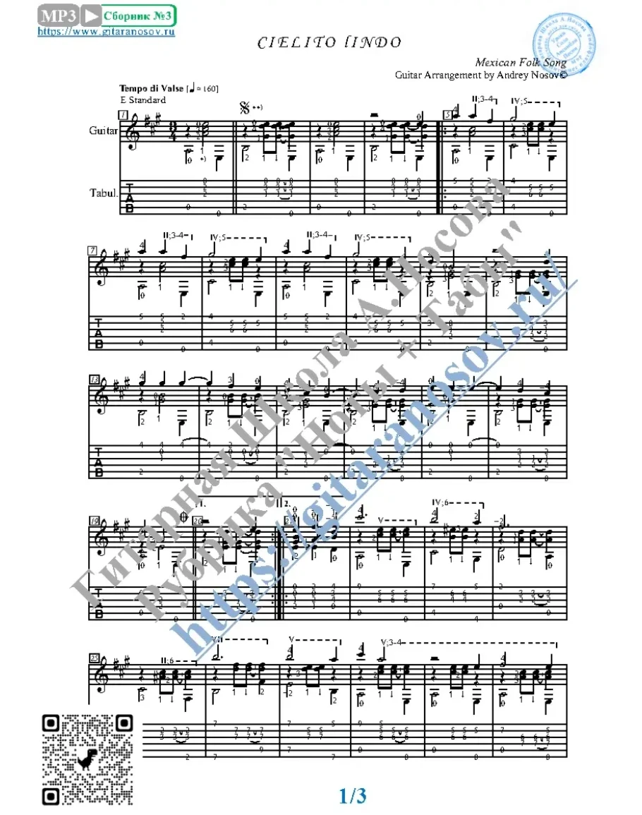 Кликните "Подробнее" для получения дополнительной информацииВашему вниманию предлагается композиция "Cielito lindo (Mexican Folk Song)", предназначенная для исполнения на 6-ти струнной гитаре СОЛО. Запись выполнена нотами, сопровождена подробнейшей аппликатурой и продублирована табулатурой. И ещё…