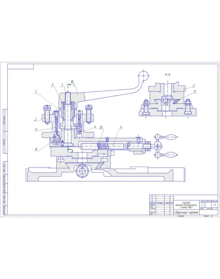 Чертеж Суппорт токарно-винторезного-станка 1К62. Сборочный чертеж.